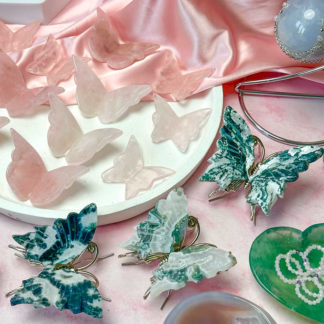 Rózsakvarc pillangó csiszolat két méretben