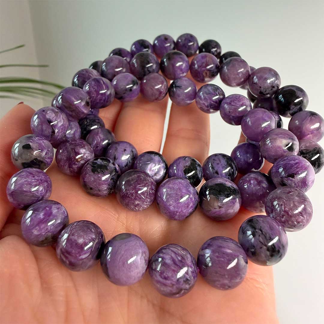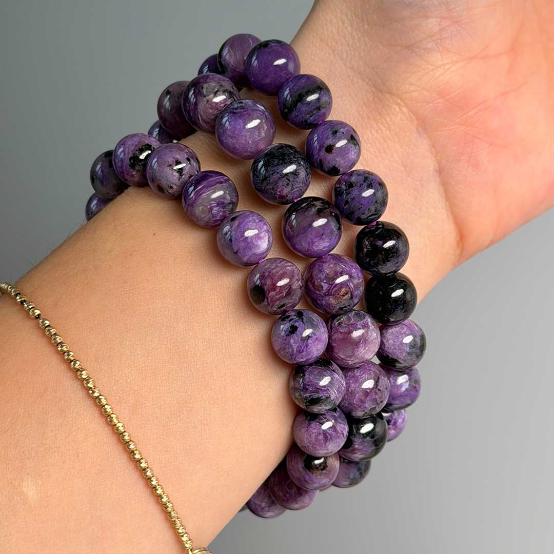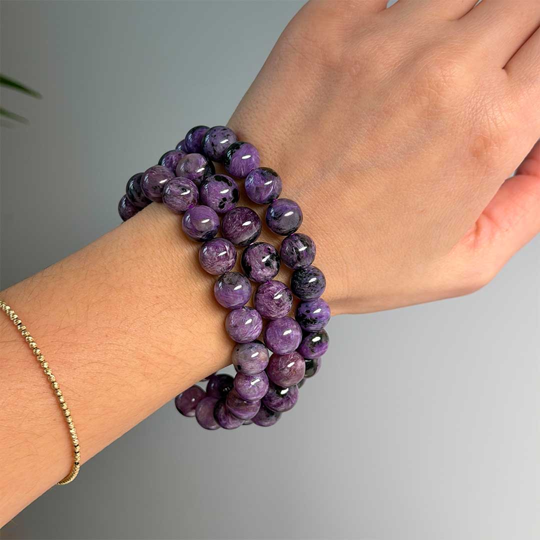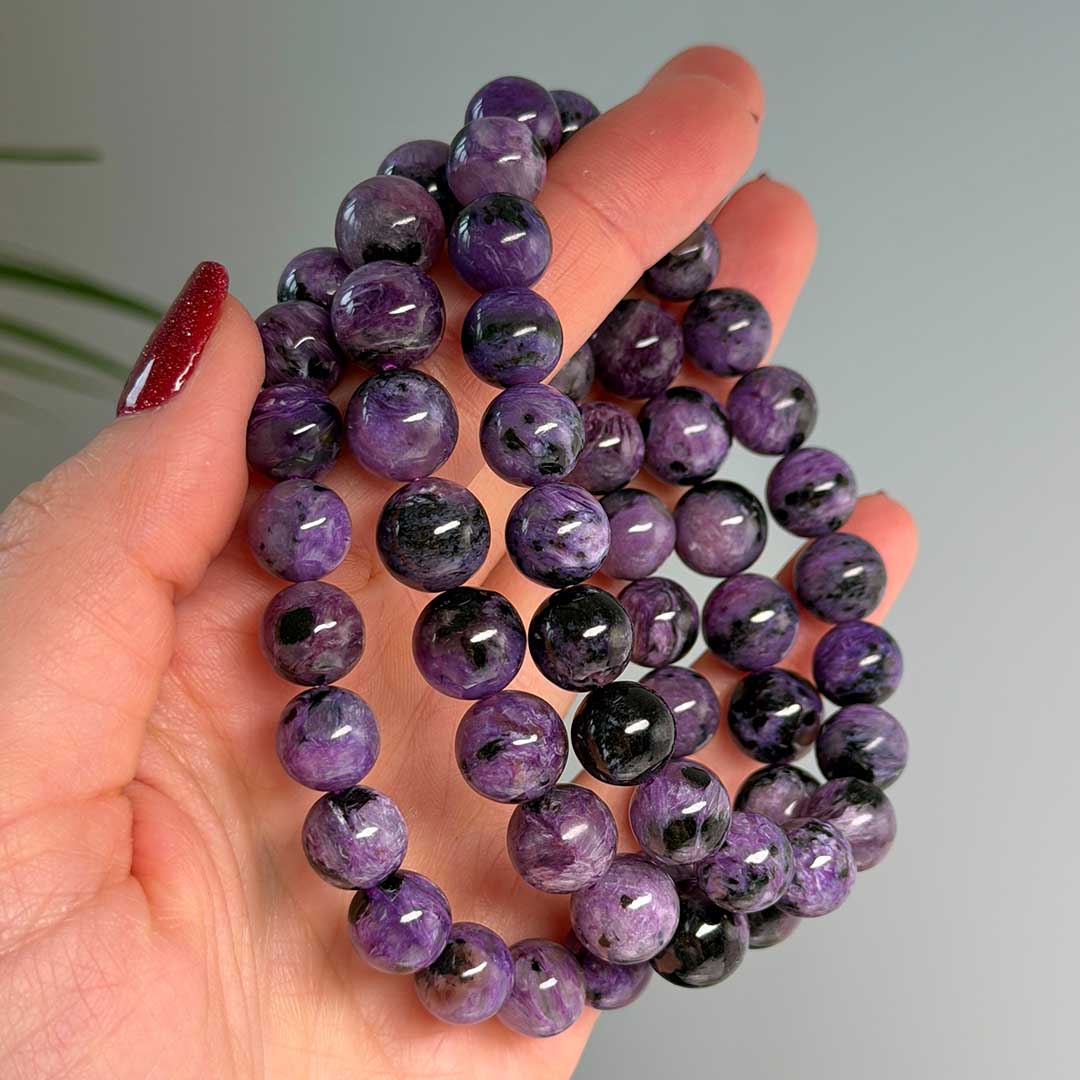 Lenyűgöző minőségű, szinte teljesen lila Csaroit karkötők érkeztek, az Oroszországi, rendkívül ritka csaroitból! Ez az ásvány a világon csak Szibériában lelhető fel, így minden darab igazán exkluzív. A természetesen élénk lila kő csillogó levendulaszínű örvényekkel és fekete aegirin zárványokkal gazdagított. Spirituális szempontból a Csaroit támogatja a belső nyugalmat, segít feldolgozni az érzelmeket, és erősíti a pozitív energiák áramlását.