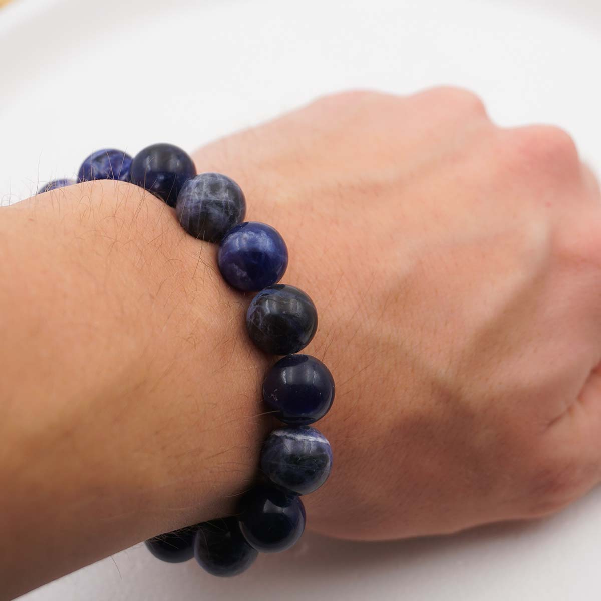 Nagy, 10 mm átmérőjű Szodalit ásávny gyöngy karkötő.