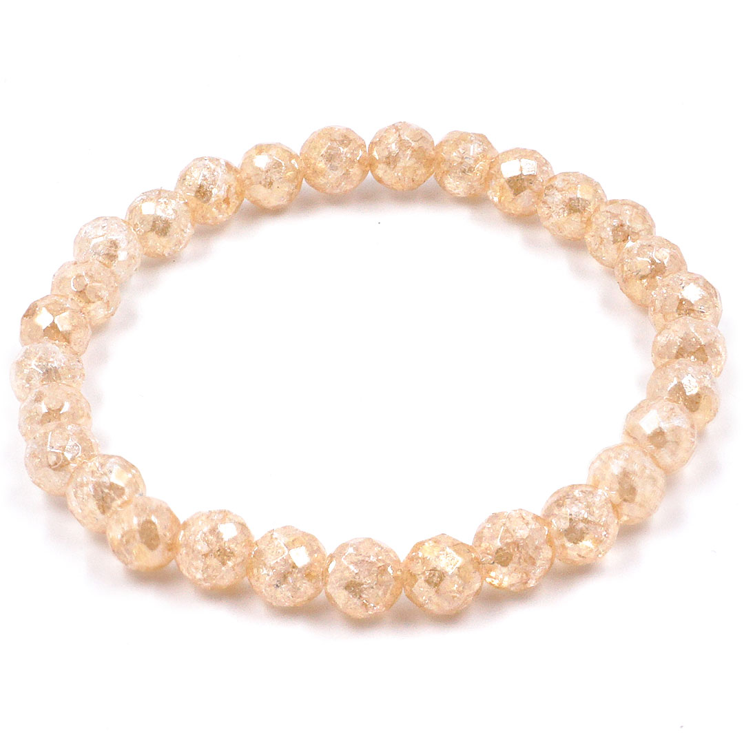 Különleges anyagú, ragyogó karkötő, mely arany és ezüst színbevonatú hegyikristályból készült. Hevítéses technikával zárványosra roppantották a gyöngyszemeket, majd felületüket fazettálták is, hogy ezer fényben csillanjon meg a karkötő. Mesés, ünnepi ékszer! Gyöngyszemeinek mérete 5-6mm