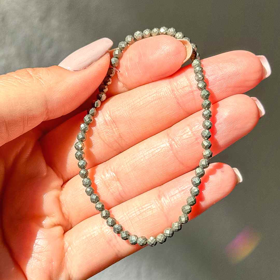 Fedezd fel a "Napfény Ragyogását"! Ez a pirit karkötő olyan, mint a nap sugaraiban tündöklő csepp. A pirit az optimizmus és a pozitív gondolkodás köve, és ez a mini méretű fazettált gyöngyökkel készített változat különlegesen elegáns. Hordozd a "Napfény Ragyogását" mindig, és érezd a nap sugaraiban rejlő energiát és örömöt! ☀️🌟💫 Gyöngyszemek mérete kb 3-4 mm