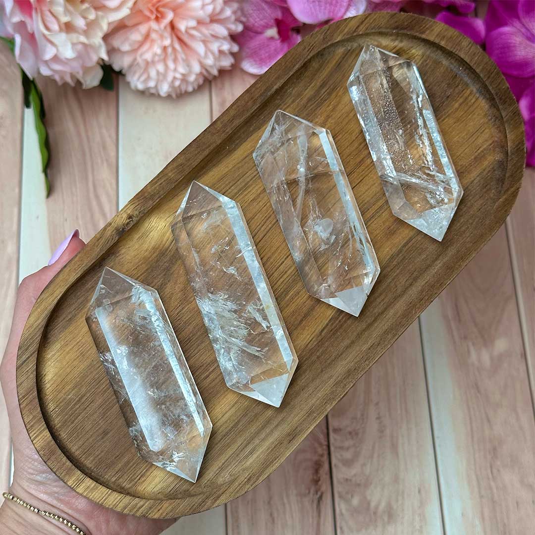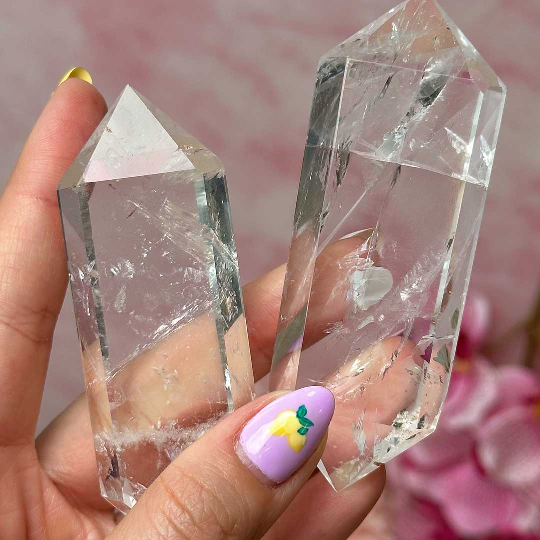 Ha a Hegyikristály legmagasabb rezgésű energiáival dolgoznál, vagy csak régóta keresel igazán tiszta darabot ebből a mesterkristályból, ezek a kézzel csiszolt, egyenként formált Hegyikristály duplacsúcsok a segítségedre lehetnek! Brazil lelőhelyről származó, a legmagasabb minőségű hegyikristály, nagyon tiszta ásvány melyen fátyol-szerűen egy-egy zárványos rész fut át. Szivárványok is megcsillannak bennük