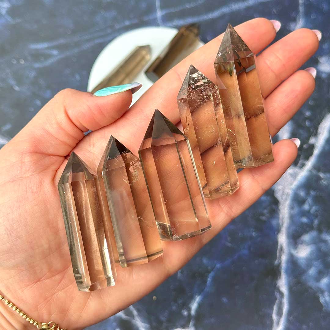 A füstkvarc csúcs egy erőteljes, mégis finoman elegáns ásvány, amely a negatív energiák elvezetésének mestere. Sötét, füstös árnyalatai a föld mélységeit idézik, miközben letisztult csúcsformája a tisztaságot és fókuszt képviseli. Kiváló földelő kristály, segít visszatérni a jelenbe stresszes, túlpörgött időszakokban.