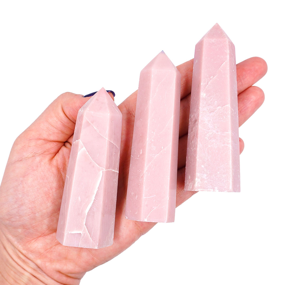 Különlegesen rész, rózsaszín alapon néhol fehér foltokkal tarkított pink opál tornyok, magasságuk kb. 8,5 - 9,5 cm között!