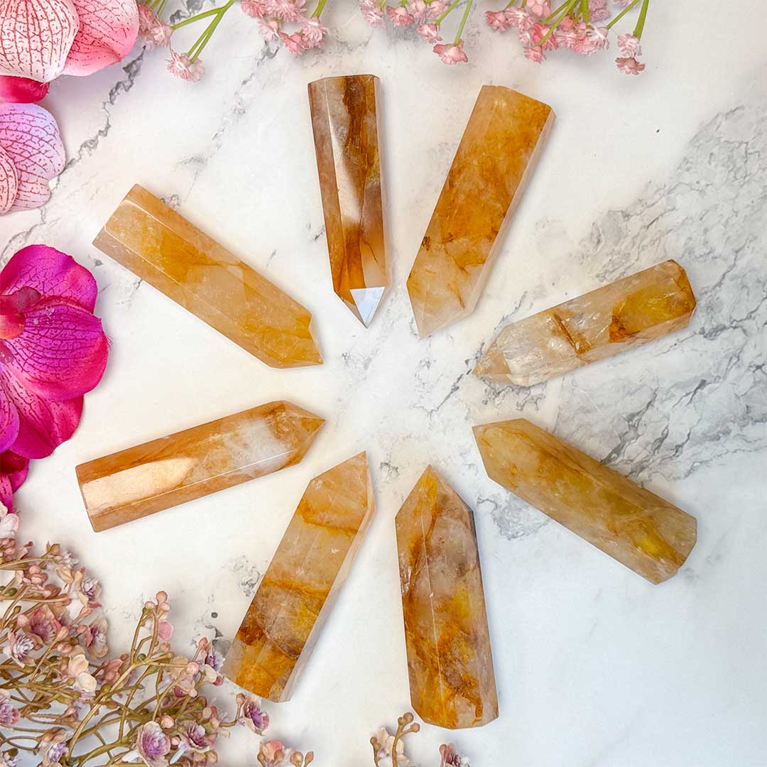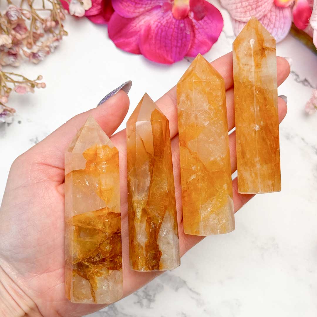 Szuper magas minőségű Sárga hematoid tornyok, melyek Golden Healer néven is ismertek. A Golden healer felkészíti a testet az egyszerre több-szinten való gyógyulásra, emeli a frekvenciánkat és meghozza a fizikai-érzelmi gyógyulást. Minden csakrával rezonál, arany fénye betölti a testet. Nagyon magas minőségű darabok! Madagaszkárról érkeztek!