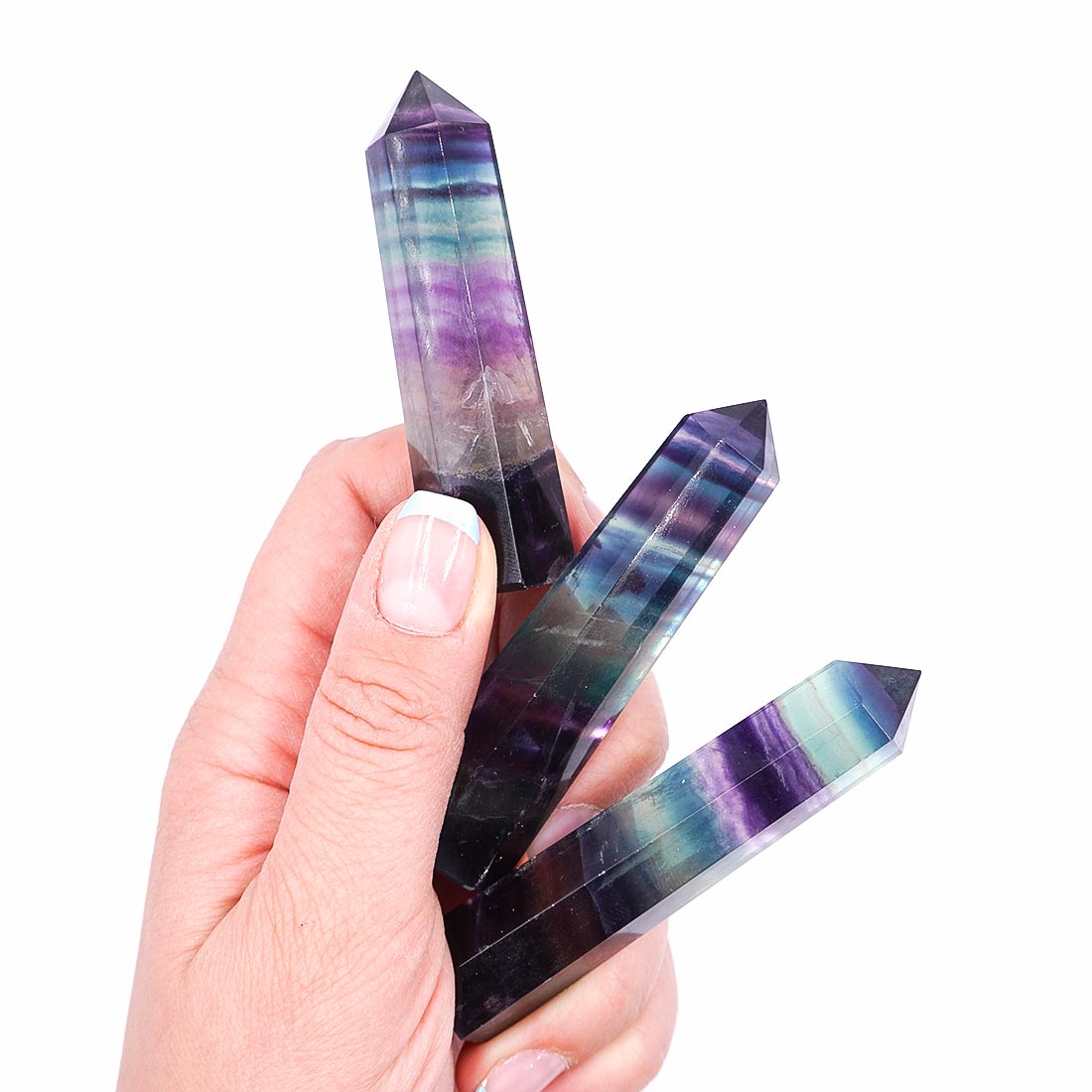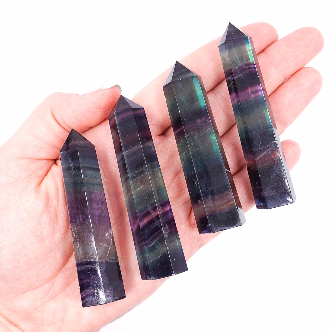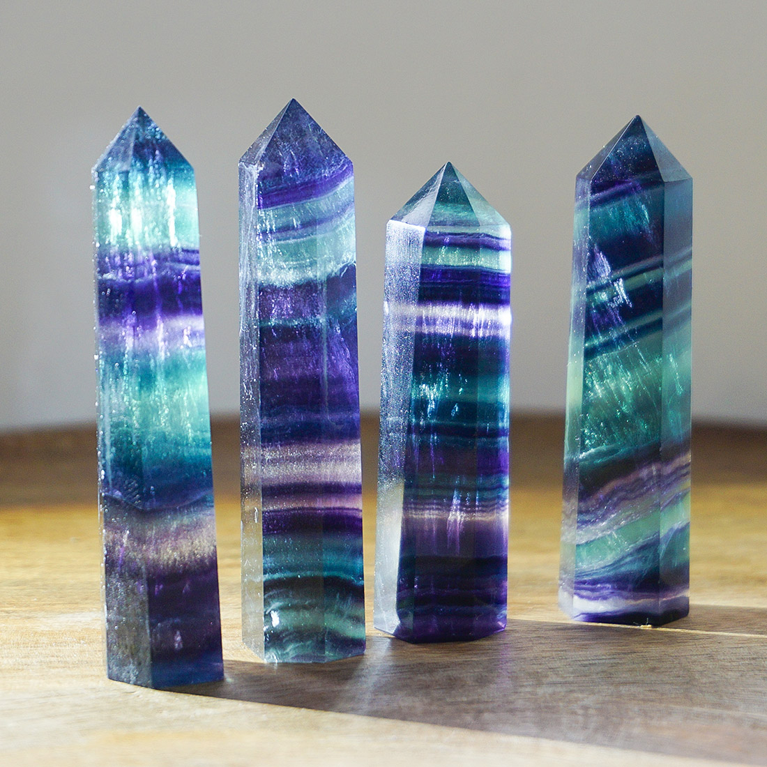 Gyönyörű, szivárványos sávozású fluorit tornyok