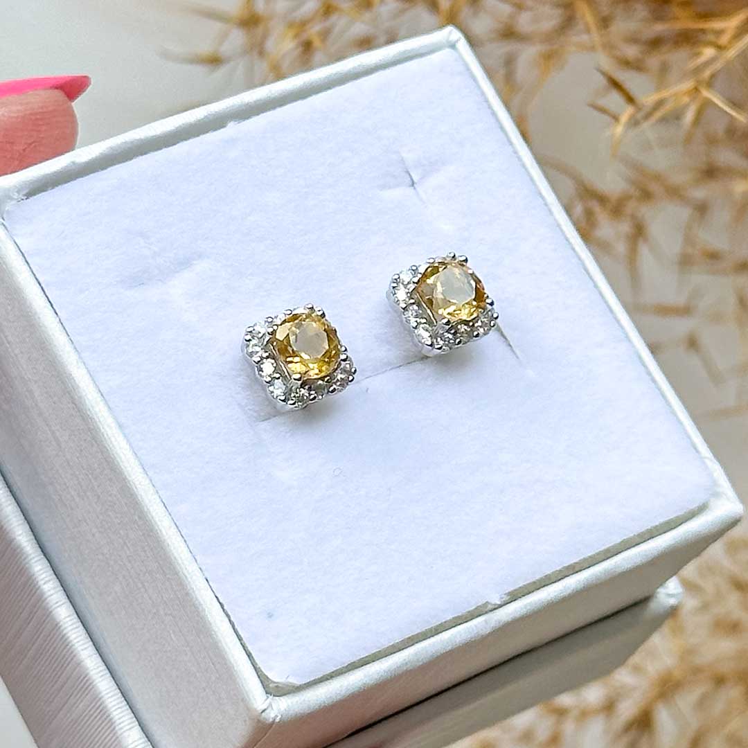 Gyönyörű ezüst fülbevaló drágakő minőségű és csiszolású citrinnel! Az ezüst nyomat a szárban olvasható.