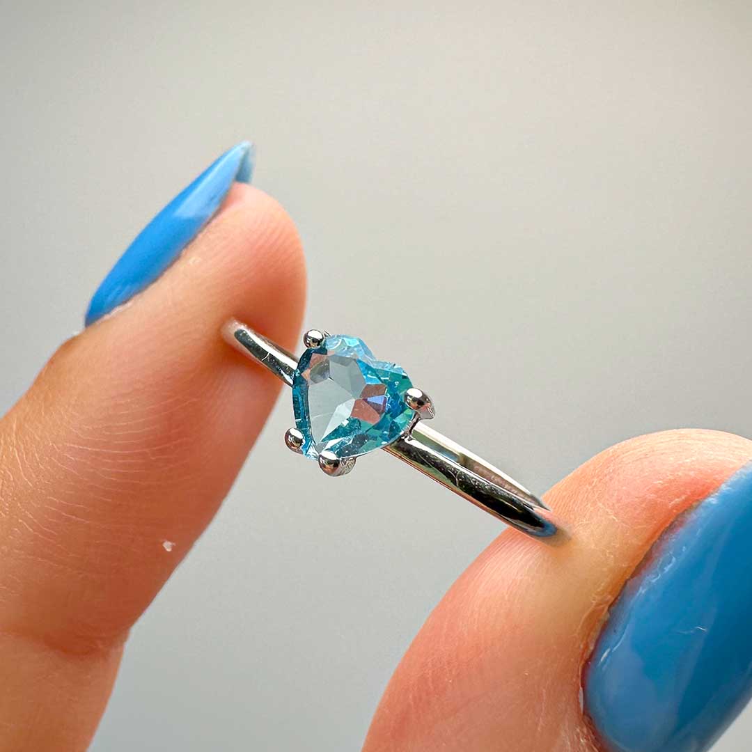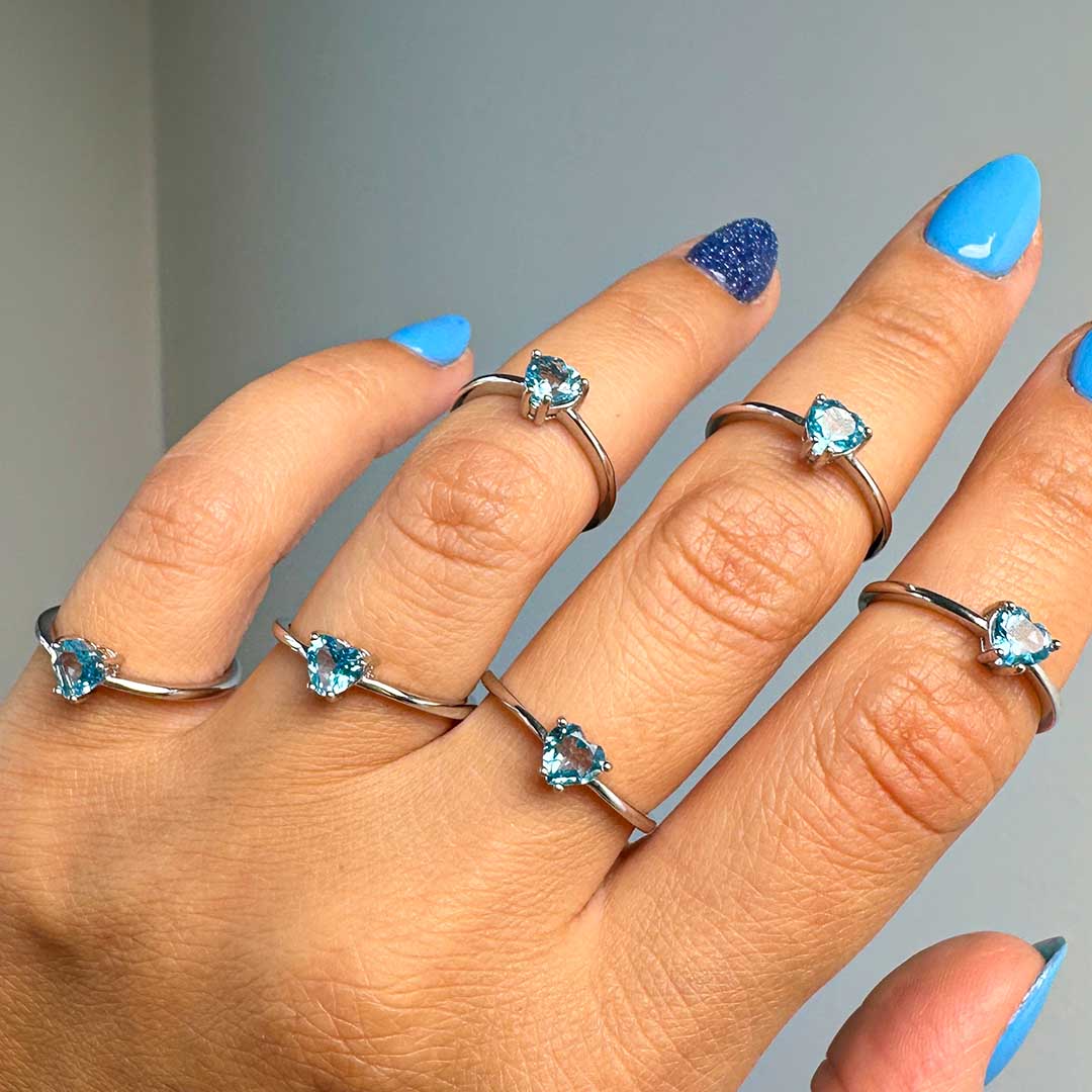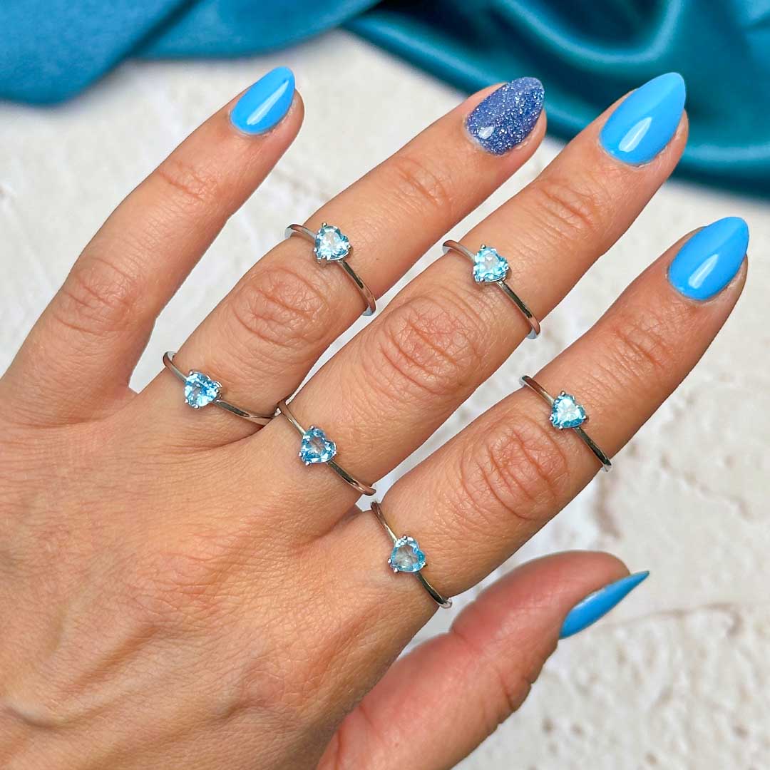 Elképesztő minőségű Topáz köves gyűrű, szív alakú fazettált kék topázzal! A topázok átlátszók, csillogók, tiszták és vízkékek - gyönyörű minőség, ezüst, állítható méretű gyűrűben!