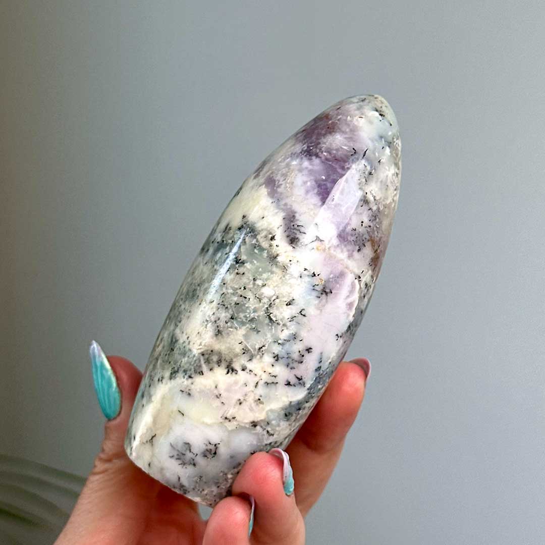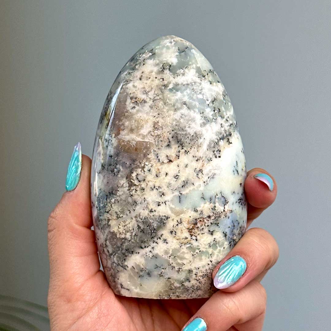 Merlinit/Dendrites Opál állvány, prémium csiszolat