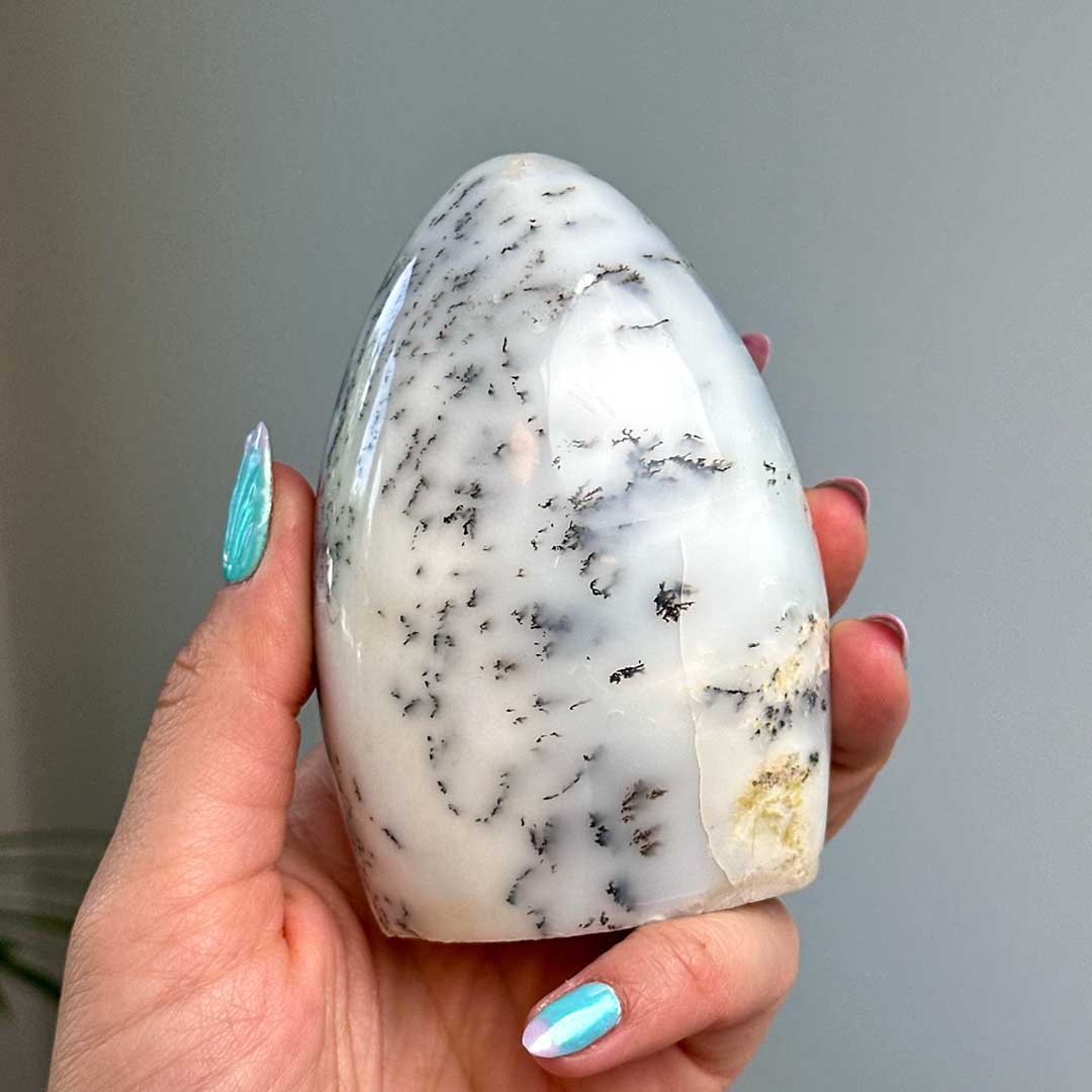 Merlinit/Dendrites Opál állvány, prémium csiszolat