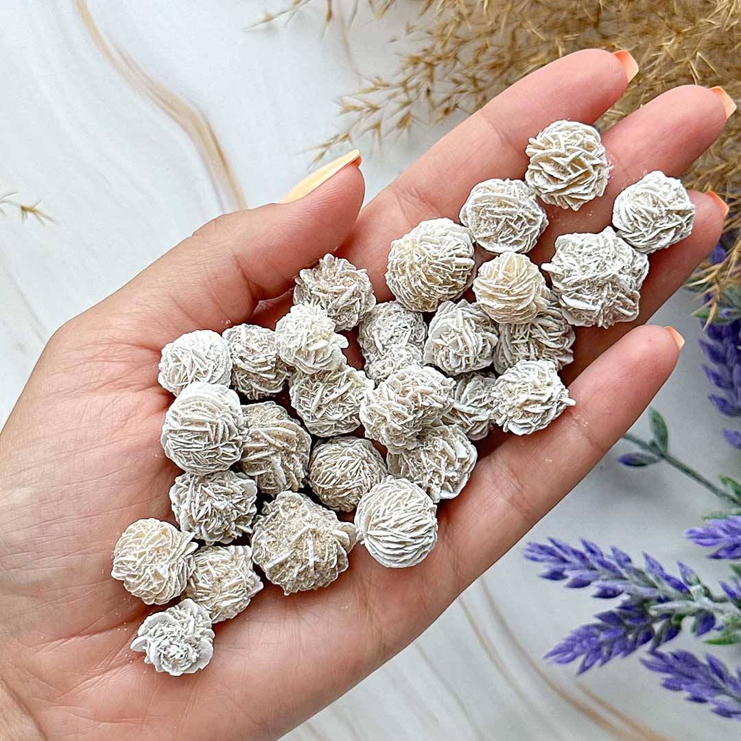 A sivatagi rózsa egy nagyon mutatós képződmény, mely a szelenit egy típusa: víz, szél és a homok váltakozó munkája során keletkezik, és kialakul ez a jellegzetes "rozettás" képződmény. Sivatagokban alakul ki néhány száz év alatt, így fiatalabb, mint a legtöbb ásvány, amit láthattok nálunk!