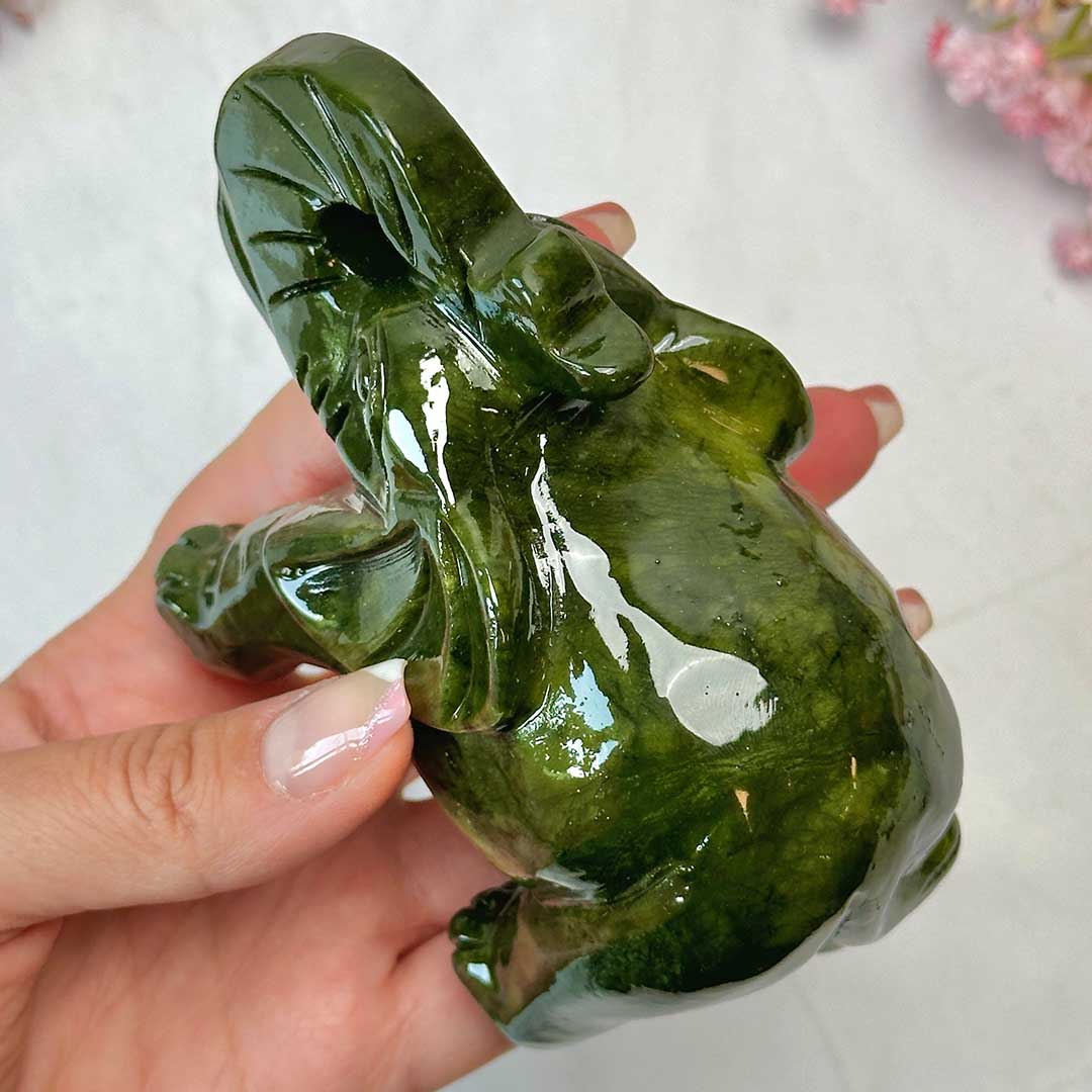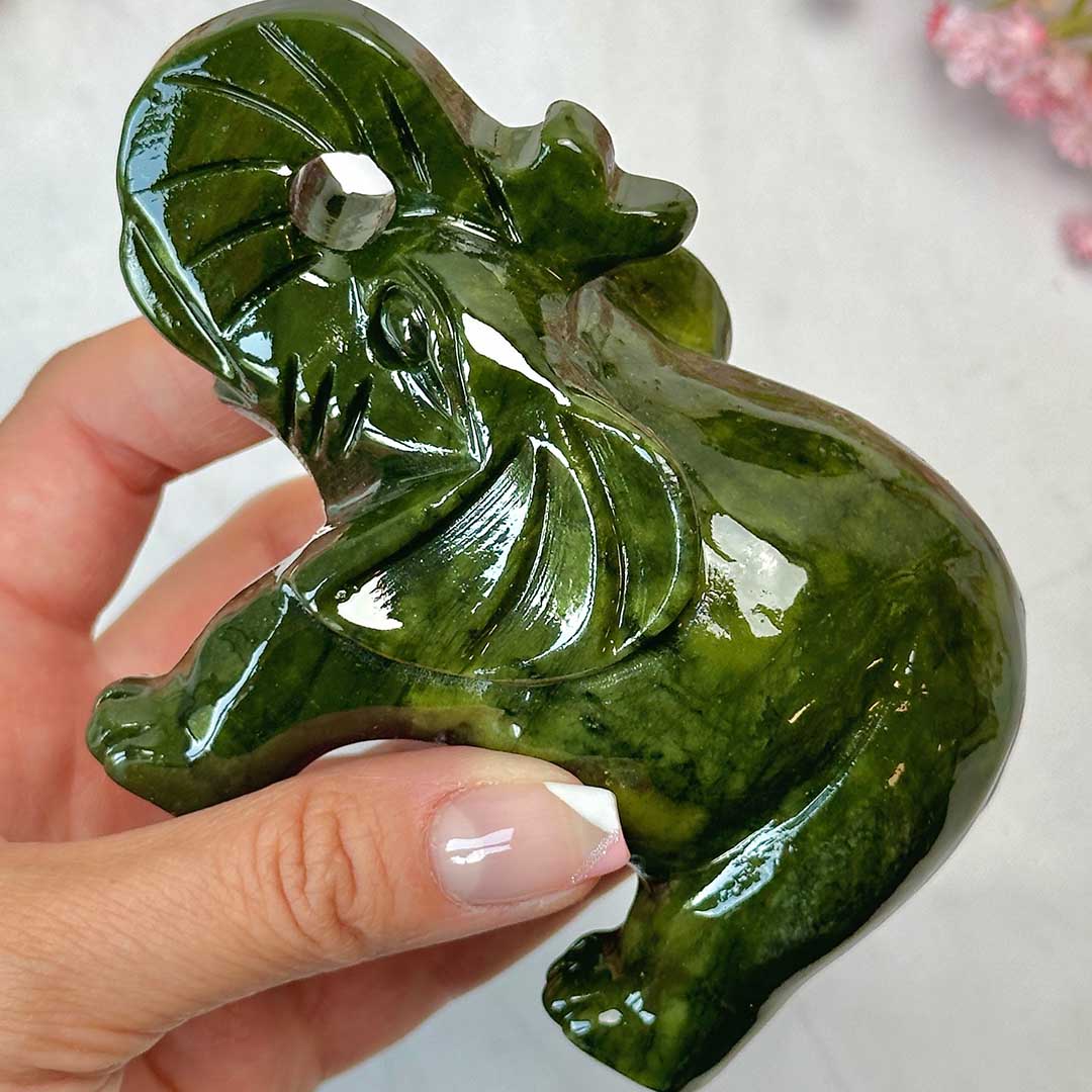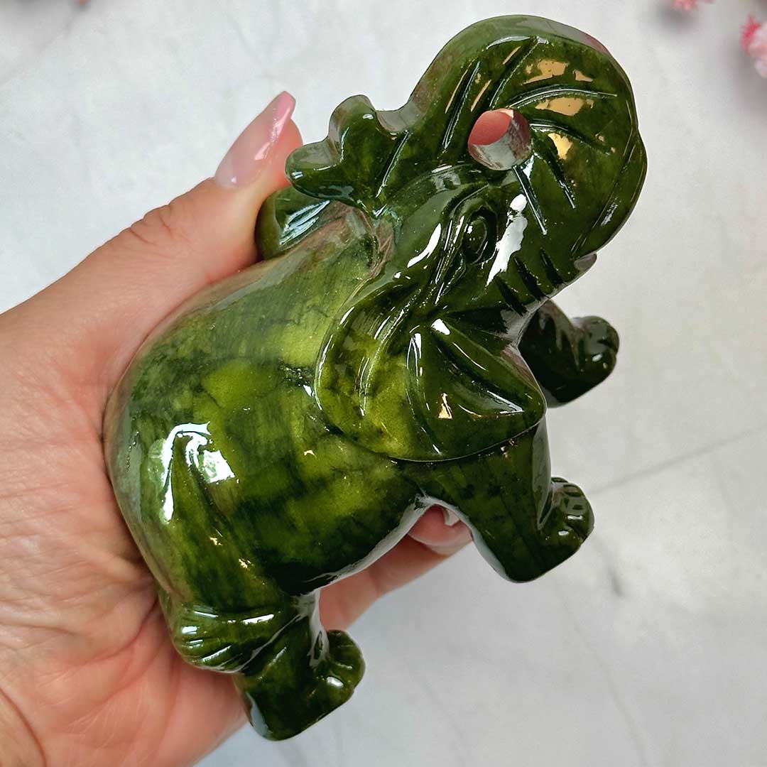 Szerpentinitből faragott szerencse hozó elefánt Kínából!🐘Ormánya felfelé mutat, érdemes a bejárati ajtó közelébe helyezni ugyanis utat mutat ormányával a szerencsének, hogy beköltözhessen otthonodba. Nem konkrétan ezt a darabot kapod, de pontosan ilyet, eltérés csak a zöld árnyalataiban lehet apróbb mértékben.