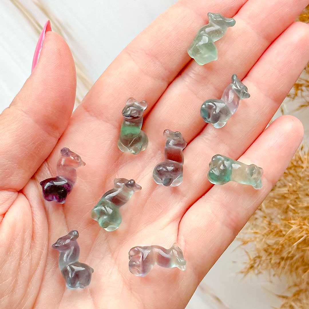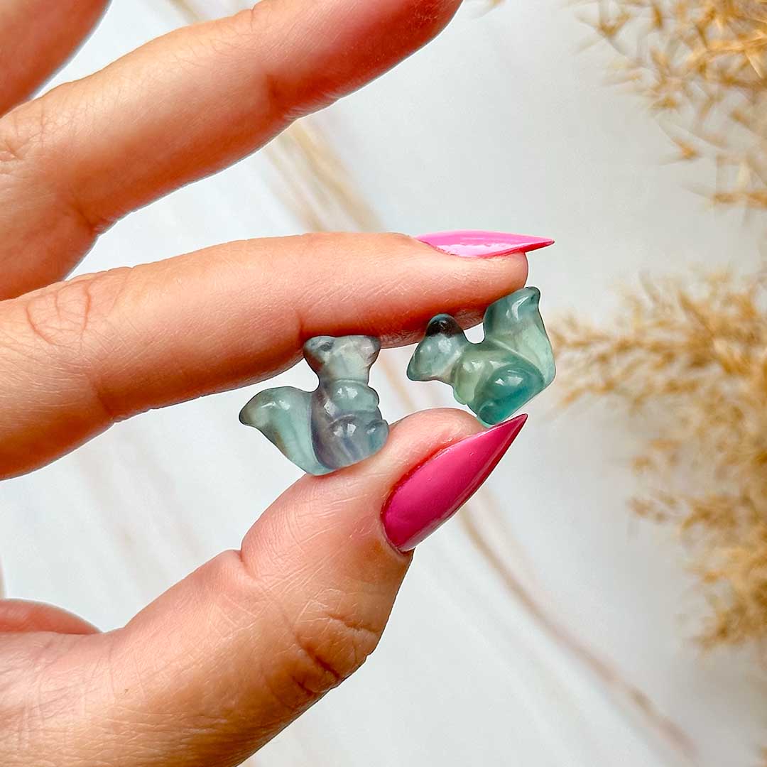 Tündéri fluorit mini csiszolataink érkeztek! Ezek az apró, de annál gondosabban kidolgozott faragványok különböző bájos alakzatokra kerültek alapos munkával csiszolásra. Zöld, lila és átmenetes fluorit anyagot használtak, így igazán színes és változatos, roppant mutatós kis kabalákat kaptunk! Válaszd ki a szívedhez leginkább közelebb állót, vagy állíts össze belőlük egy kis segítő csapatot!