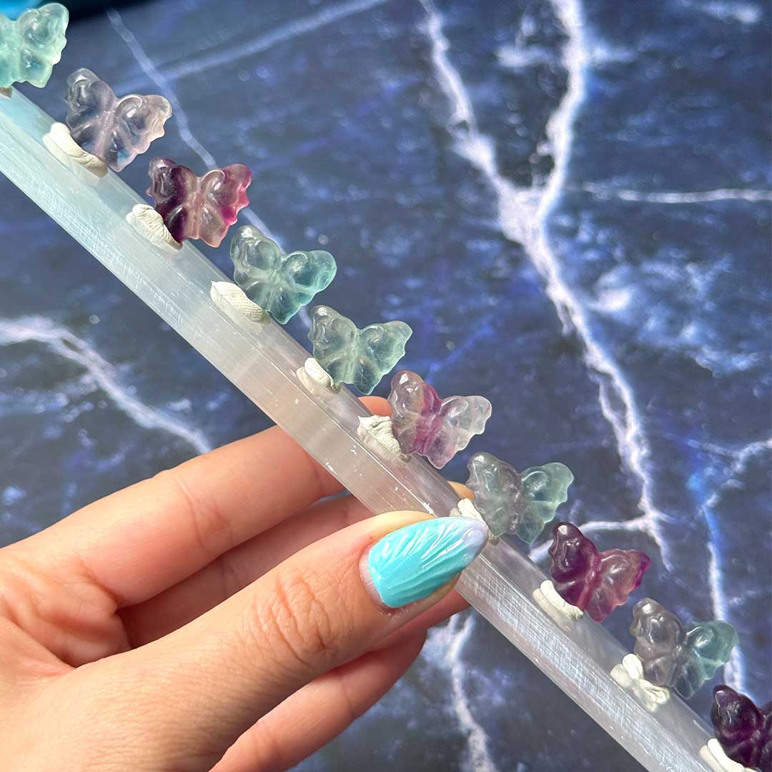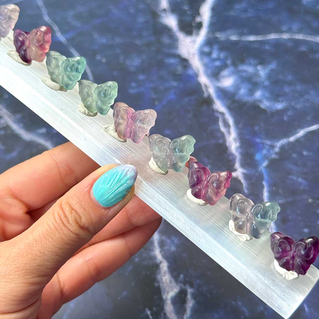 Hozd el otthonodba a fluorit kristály tiszta, harmonizáló energiáját ezzel a különleges, kézzel faragott pillangó faragvánnyal! A pillangó az átalakulás, a változás és a szabadság gyönyörű szimbóluma, amely tökéletesen illik a fluorit kristály tisztító és energetizáló erejéhez.
