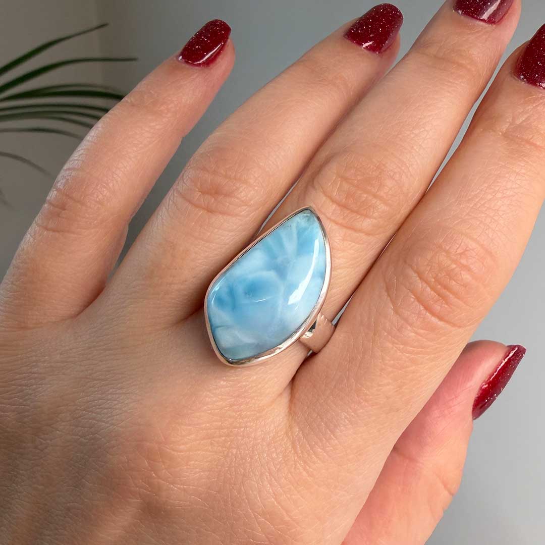 Ez a Larimar gyűrű igazán meseszép darab, sőt S925 ezüstből készült. Az állítható méret lehetővé teszi, hogy a gyűrű tökéletesen illeszkedjen, miközben a méretállítás diszkréten, a kristály mögött történik, így szinte láthatatlan marad. A Larimar a pektolit kék változata, vulkáni eredetű kőzetekben képződik, kékes árnyalatait a rézionok adják. Polírozott felülete elegáns, különleges megjelenést kölcsönöz ennek a prémium minőségű ékszernek.