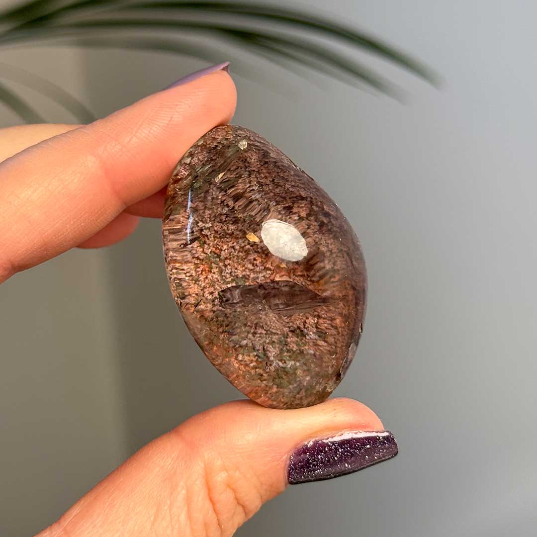 Prémium, elvarázsolt világokat felfedő csiszolat! A Lodolit, más néven Garden kvarc, egy varázslatos kvarcfajta, amelynek belsejében klorit-, földpát- vagy hematitzárványok alakítanak ki lenyűgöző mintázatokat – mintha apró kerteket, víz alatti világokat vagy misztikus tájakat látnánk a kristály mélyén. Itt a csodás mintán túl a kvarc is rendkívül tiszta, nagyon jó belátást biztosít.