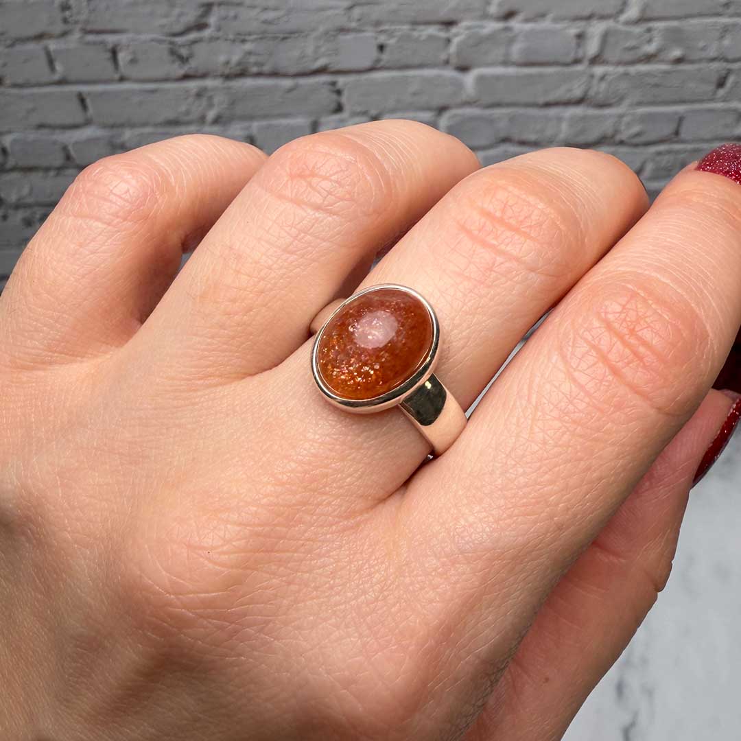 Ez az állítható méretű ezüst gyűrű ragyogó, aranyló fényű Napkővel készült, amely finoman csiszolt felületén gyönyörűen játszik a fénnyel. A napkő egy földpát ásvány, amelynek különleges csillogása a bennük található mikroszkopikus hematit- vagy goethit-tartalomnak köszönhető. Ez az S925 ezüst foglalatú gyűrű elegáns és karakteres ékszer, amely stílust és egyediséget ad viselőjének, állítható méreténél fogva pedig könnyen személyre szabható.