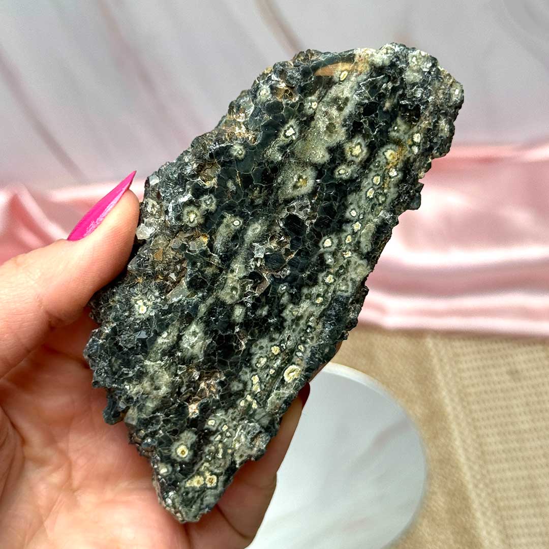 Kérjük vedd figyelembe, hogy ásványaink természetes eredetűek, így néha lehetnek kisebb “tökéletlenségei”. Ebbe beletartozhatnak a megmunkálás nyomai, mivel ezeket a köveket egyenként vágják és formálják kézzel.