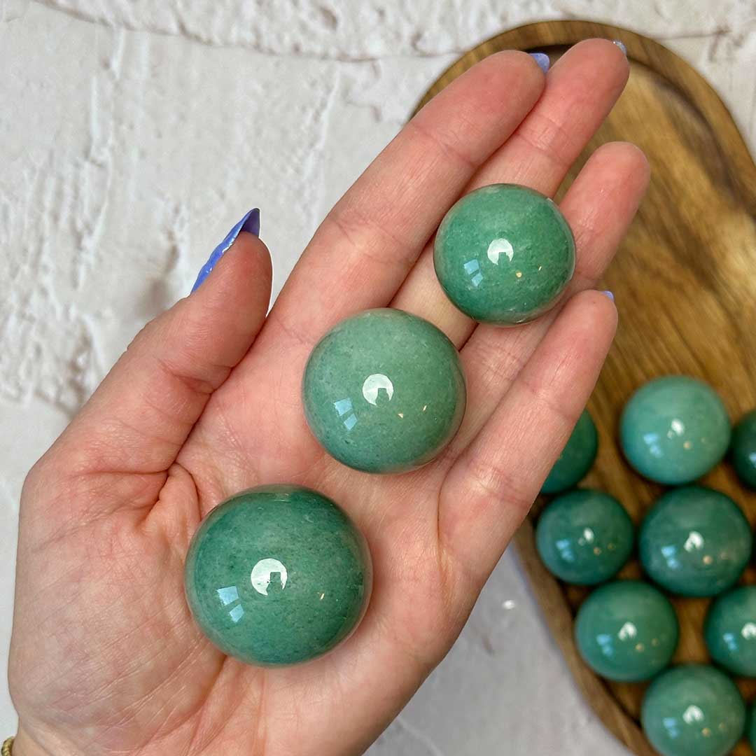 Gyönyörű, zöldes árnyalatú aventurin gömbök.