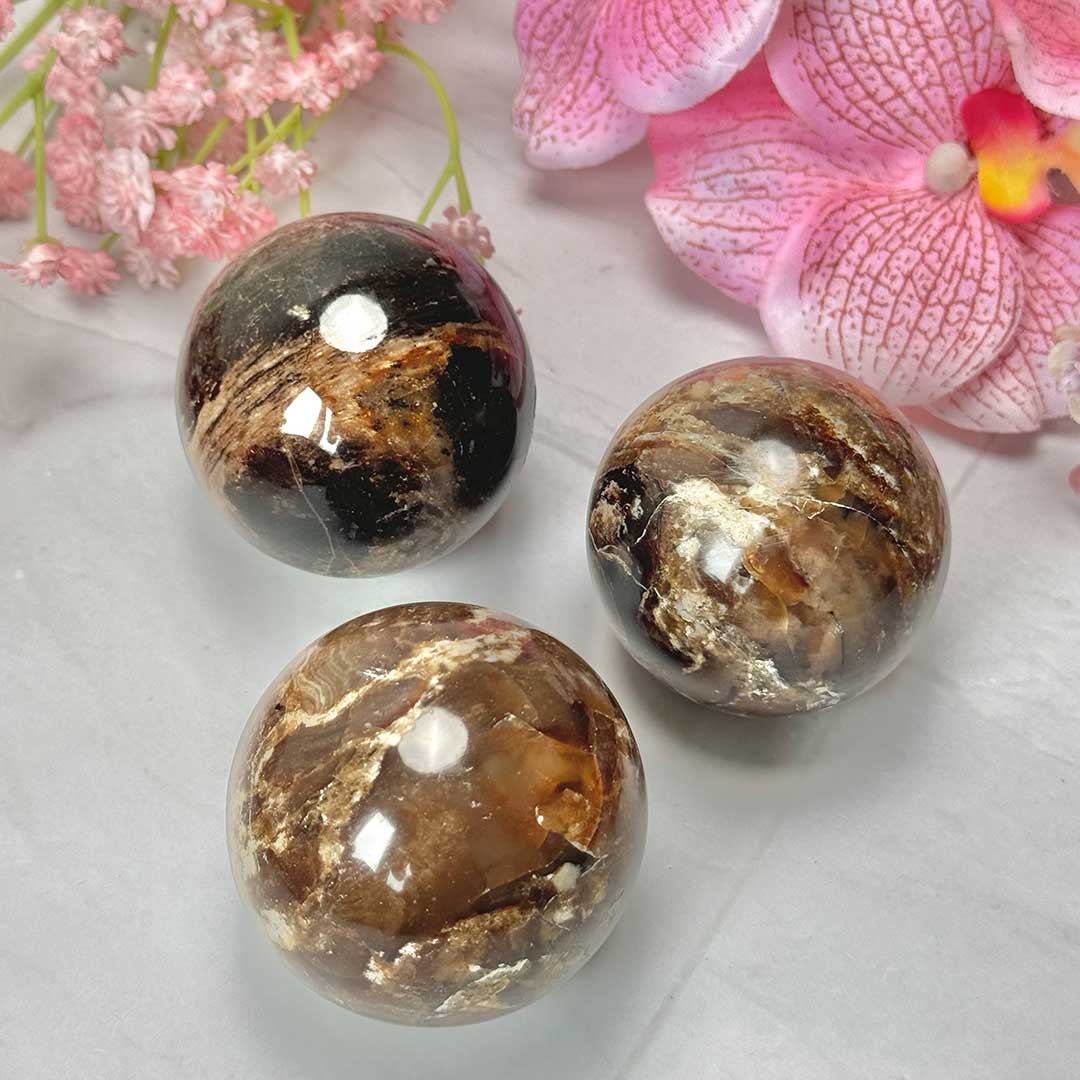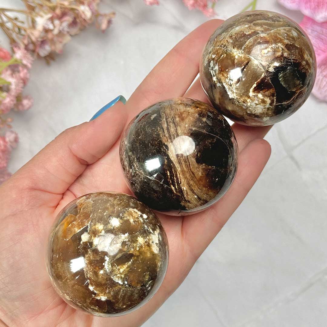 Kavargó mintázatú Barna opál gömbök, az olvadó csokoládéra emlékeztető (vagy csak a függőket?🤪) mintázattal!