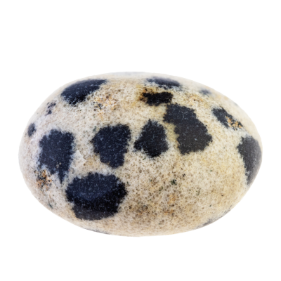 A jáspis érdekes, dalmata-szerű mintázattal pettyezett típusa golyó formára csiszolva.