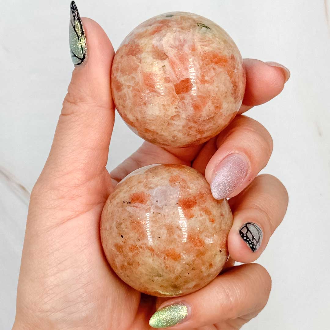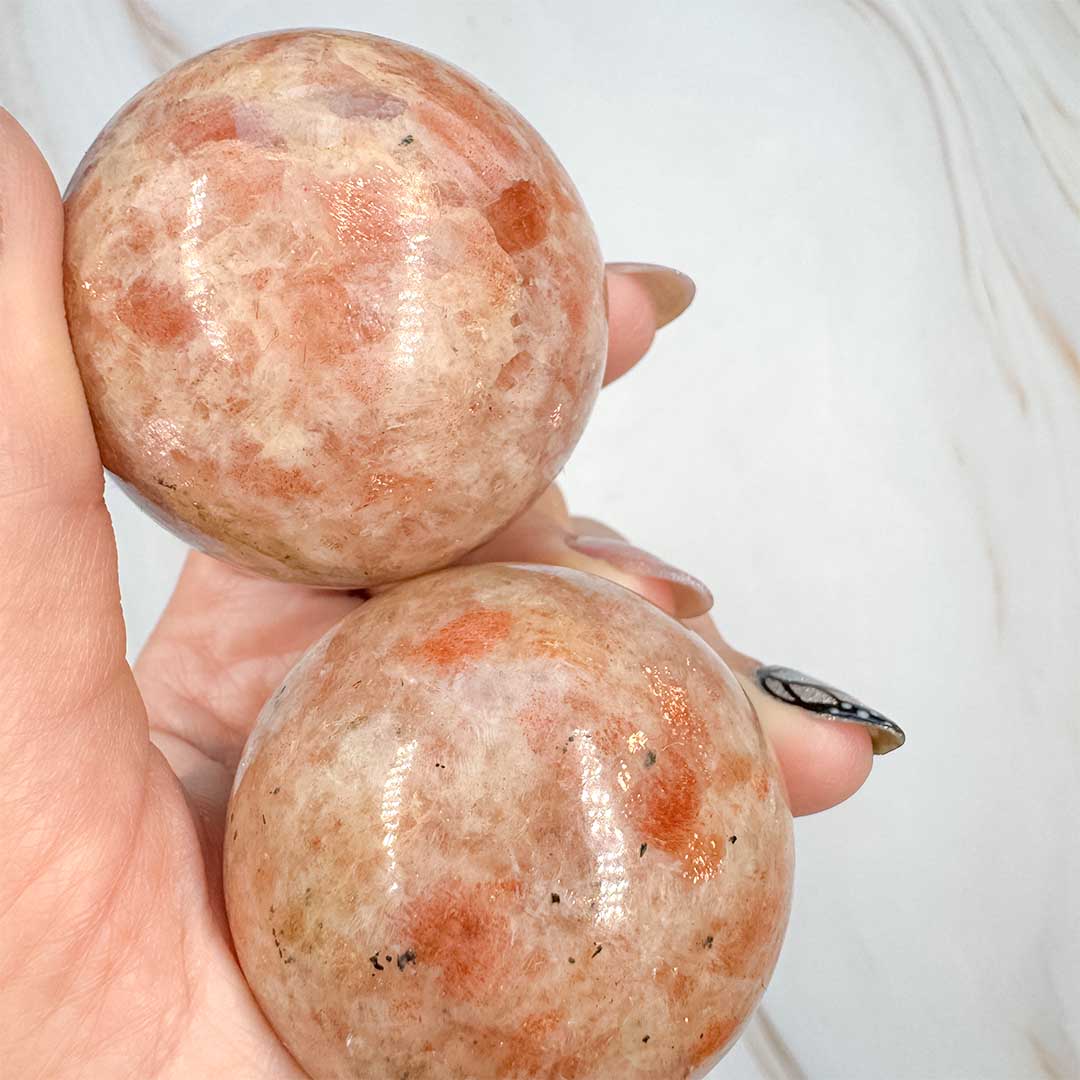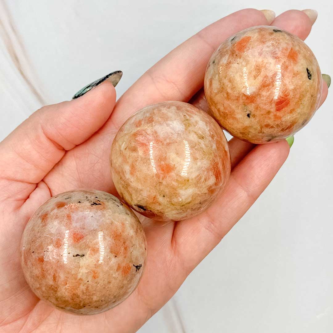 Mesés, csillogó foltokkal tarkított napkő gömbök, fénylő és pozitív energiájú Napkő golyók!