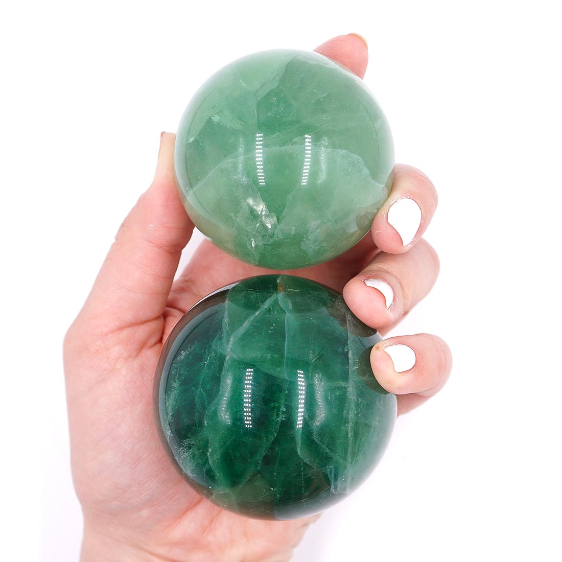 Gyönyörű, zöld-méregzöld fluorit golyók Madagaszkárról.