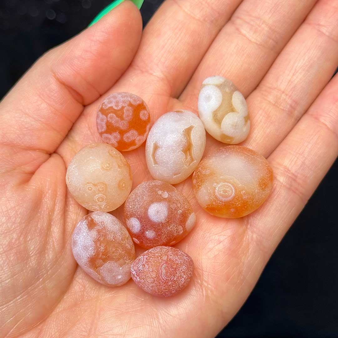 Nagybetűs Ritkaság! A Gobi Desert Achát egy teljesen természetes, sivatagi achát-kalcedon képződmény, mely egyedül a Góbi sivatagban található meg, Kína és Mongólia határán. Felszínét szemekre emlékeztető orbikuláris mintázatok borítják, melyek tapintásra is érezhetőek, mintázata enyhén bordázott, a “szemek” kissé kiemelkednek. A geológusok szerint eredendően egy 220 millió évvel ezelőtti vulkánkitörés eredményei, majd ezt követően a felszínüket a folyamatosan változó sivatagi körülmények, a szél, csapadék formálják. Nem csiszoltak, a formájuk és a felszínük is természetes, mely utóbbi a sivatagi időjárásnak köszönhetően homokfúvott hatású. 🏜️A színe is teljesen természetes, de más, földesebb, akár zöldes színekben is megtalálható a természetben. 🏜️Nagyon ritka ásvány, és teljesen még meg nem értett, kis mennyiségben érhető csak el melyet a helyi nomádok gyűjtenek össze sivatagból.