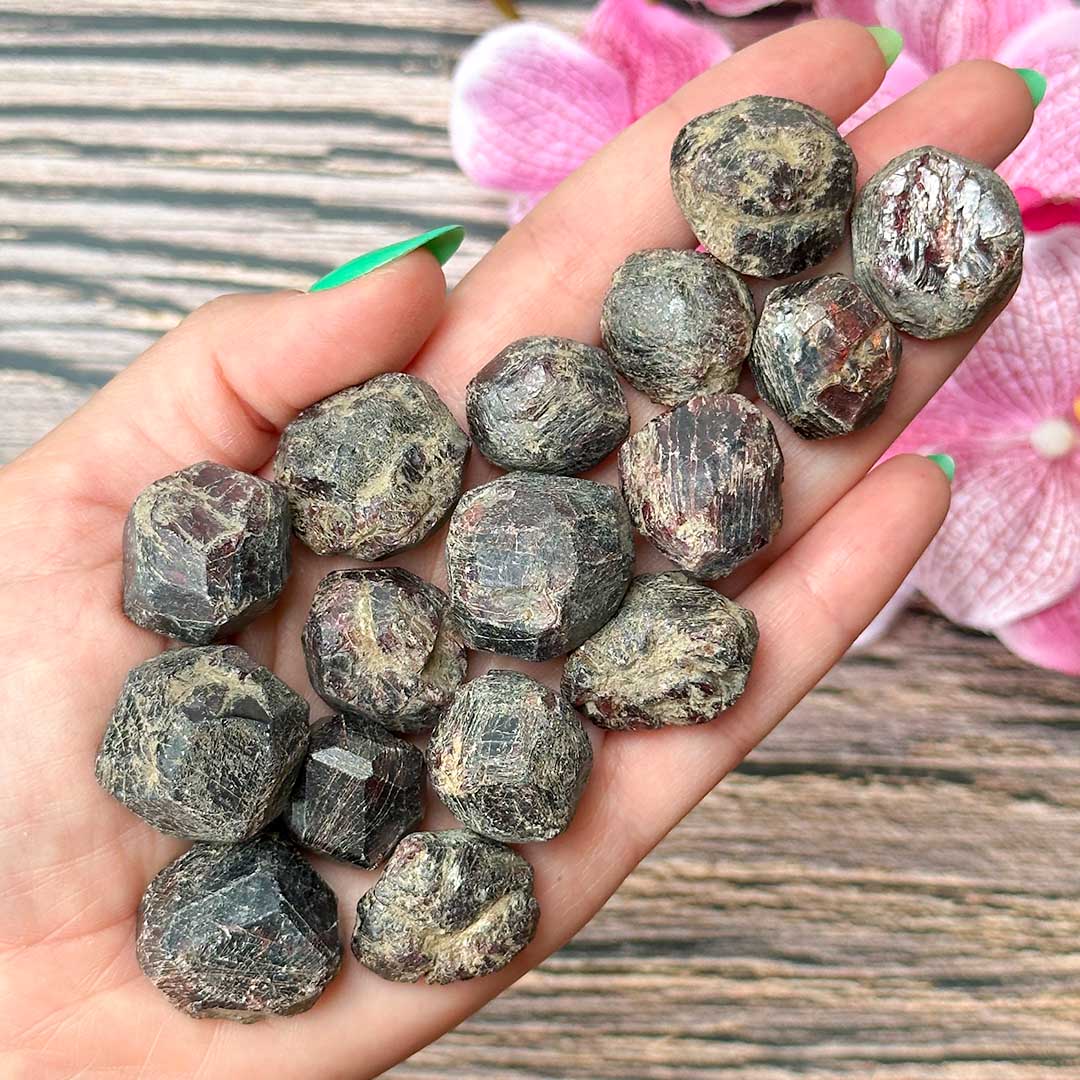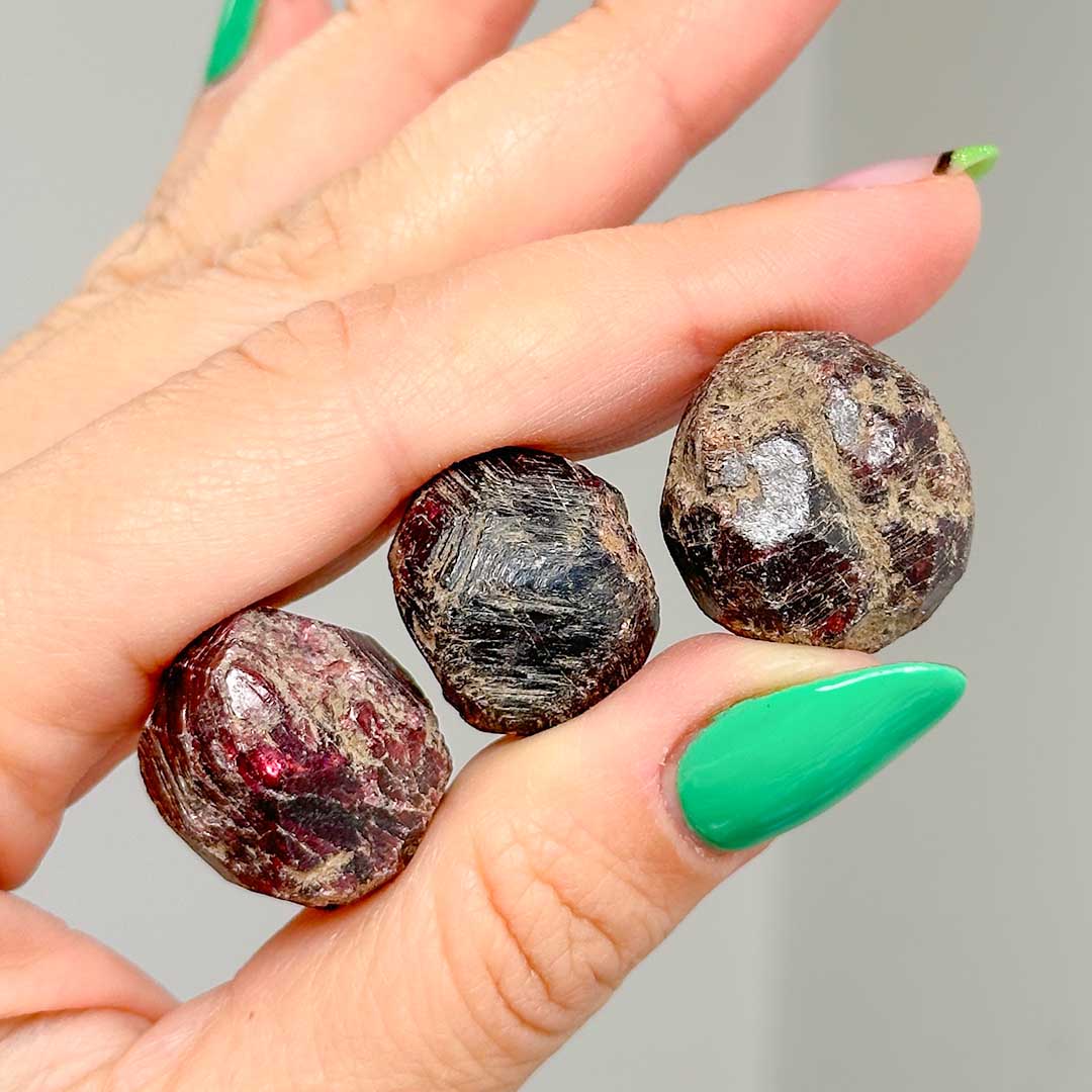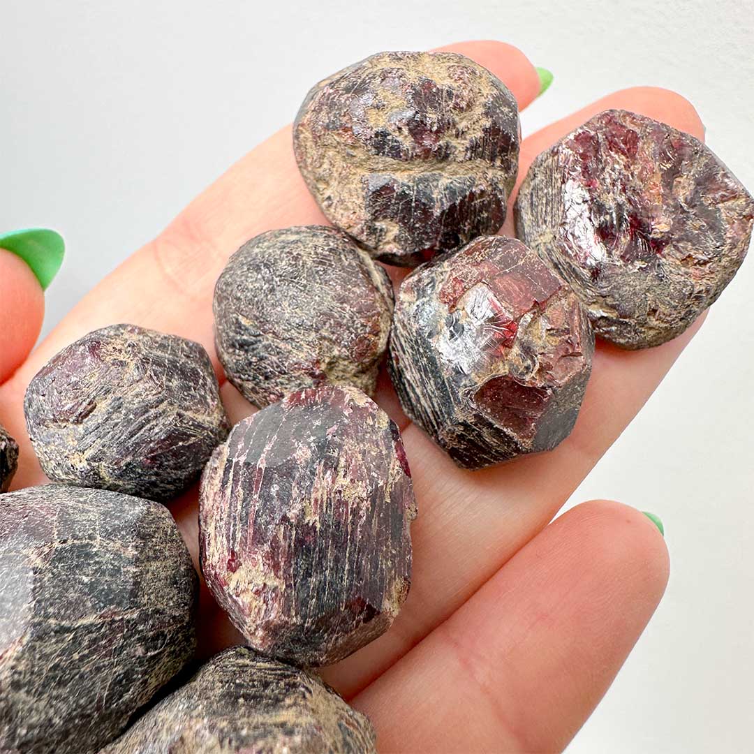 Nagyon szép nyers gránátok barnás-vöröses színben.