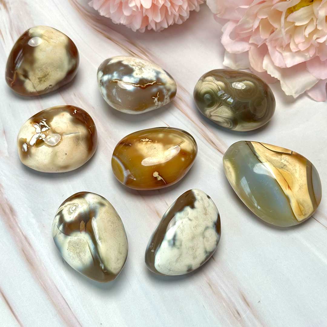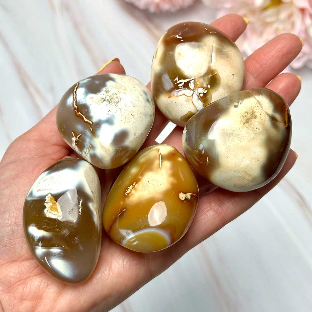 Tűz és víz kombinációja, Karneol x Orca Achát marokkövek! Extra régóta keresünk a két ásvány fúziójából bármilyen formát, ezek a marokkövek pedig beváltották a reményeinket - gyönyörű mintás, karneol alapon orca acháttal körülölelt kristályok, melyek mindkét ásvány hatásait hordozzák.