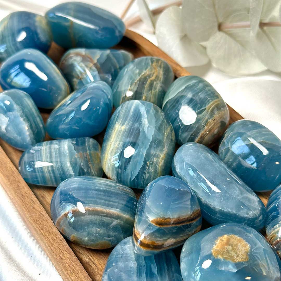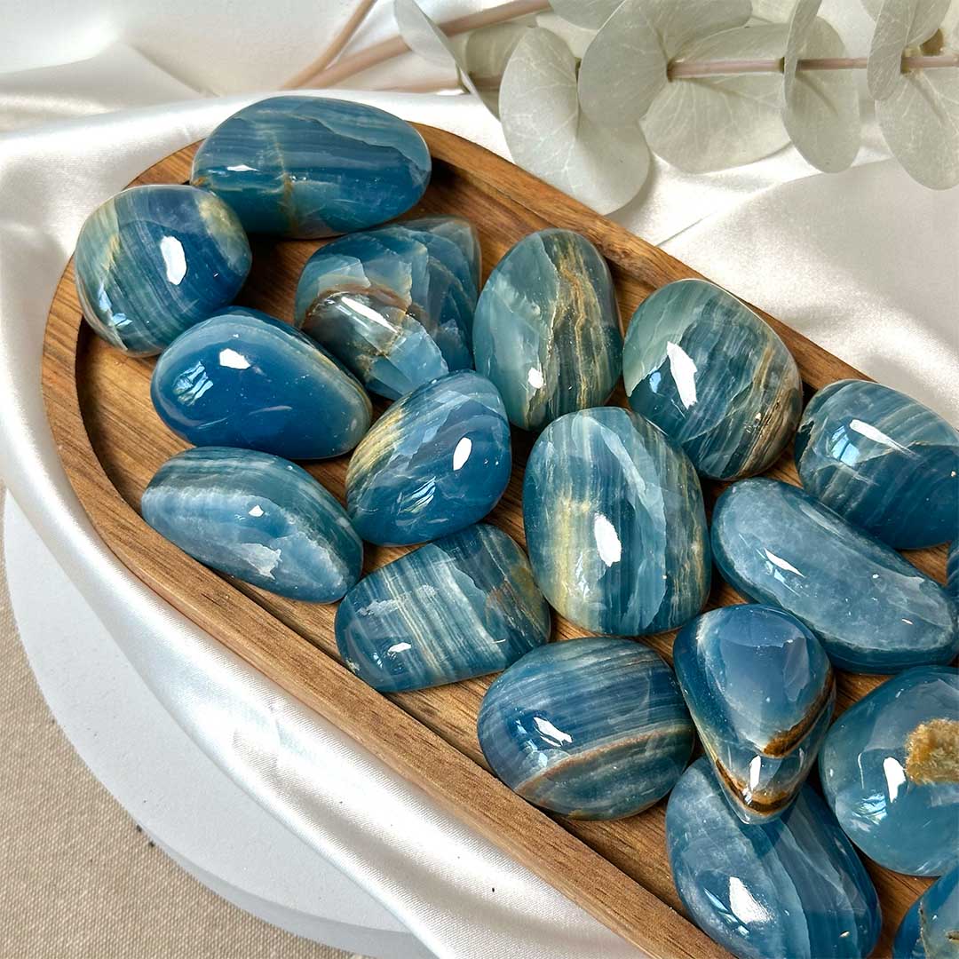 A Lemurian Aquatine Kalcit egy ritka, halványtól a mély tengerkékig terjedő árnyalatú kalcitváltozat, melyet különleges, vízre emlékeztető színvilága és rétegzett megjelenése tesz igazán egyedivé. (sokan Kék ónixként is ismerhetitek)