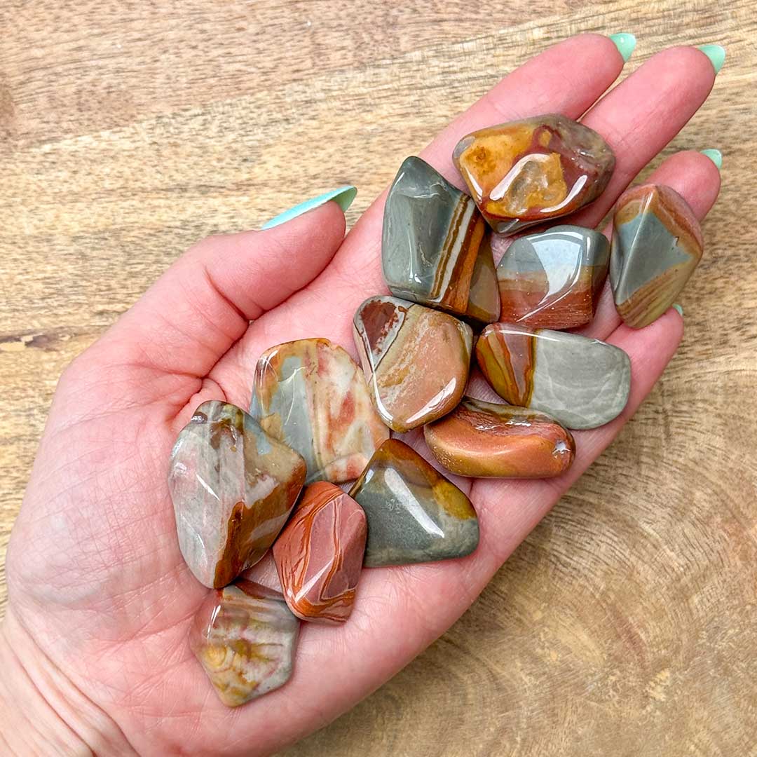 Ezek a színes-változatos, nagyon jó fogású marokkövek a polikróm jáspis nevet viselik, nagy kedvencünk a jáspisok változatos, lenyűgöző világából! Most kis marokköveket hoztunk el nektek, de egy-egy kövön belül is megfigyelhetőek a különböző színek-minták kapcsolódása.