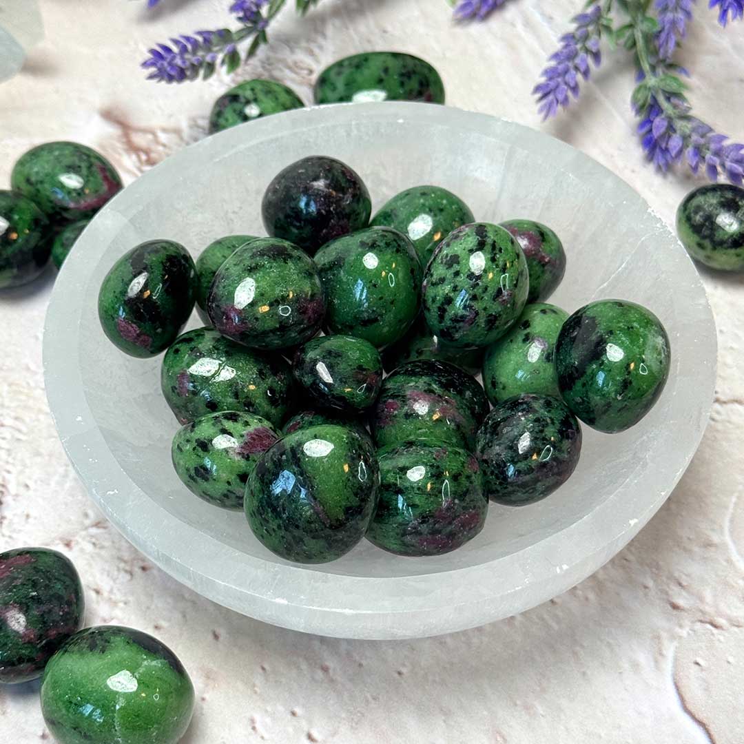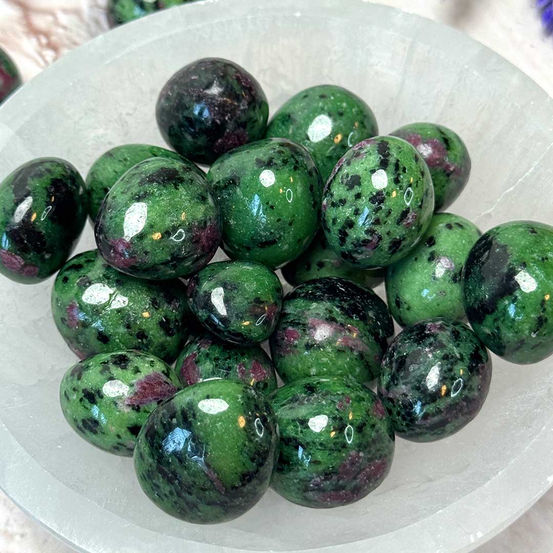 A Rubin-Zoizit marokkövek élénk színű, természetes rubin és zoizit kombinációjából készülnek, minden darab egyedi mintázatú. A zoizit a gyémánt-csoportba tartozó szilikátásvány, amelyet a rubin mélyvörös foltjai egészítenek ki. Spirituálisan ezek a kövek segítik a belső erő, önbizalom és a kreativitás kibontakoztatását, miközben harmonizálják a szívcsakra energiáit.