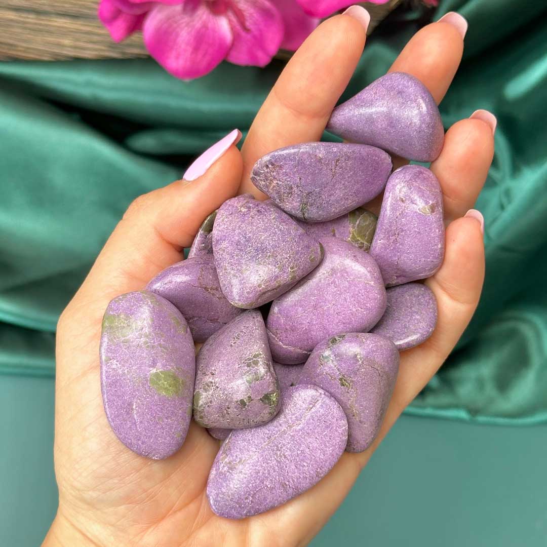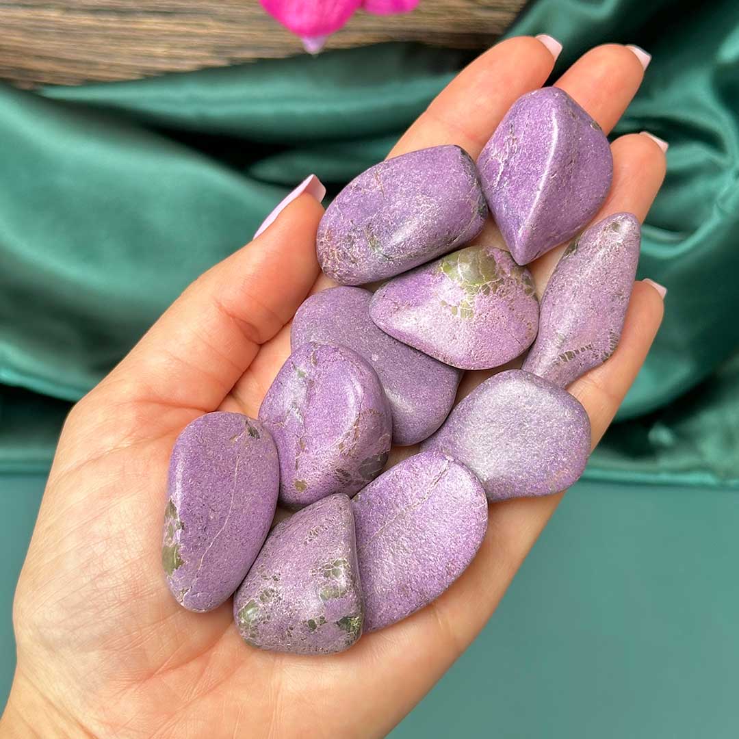 Csodás Stichtite marokkövek! Dél-Afrikából származó ásvány, melyet drágakőként tartanak számon, ritkán lelhető fel. A Stitchit egy élénk, lilás, rózsaszínes, levendulás színű magnézium-króm-karbonát ásvány, a Szerpentint is tartalmazó példányait Atlantiszitnek nevezik. Ez hatásait tekintve összekapcsolja a korona- és a szívcsakrát, felébreszti a szunnyadó energiákat, elősegíti a védelem energiáit minden olyan negativitással szemben, amellyel kapcsolatba kerülhetünk.