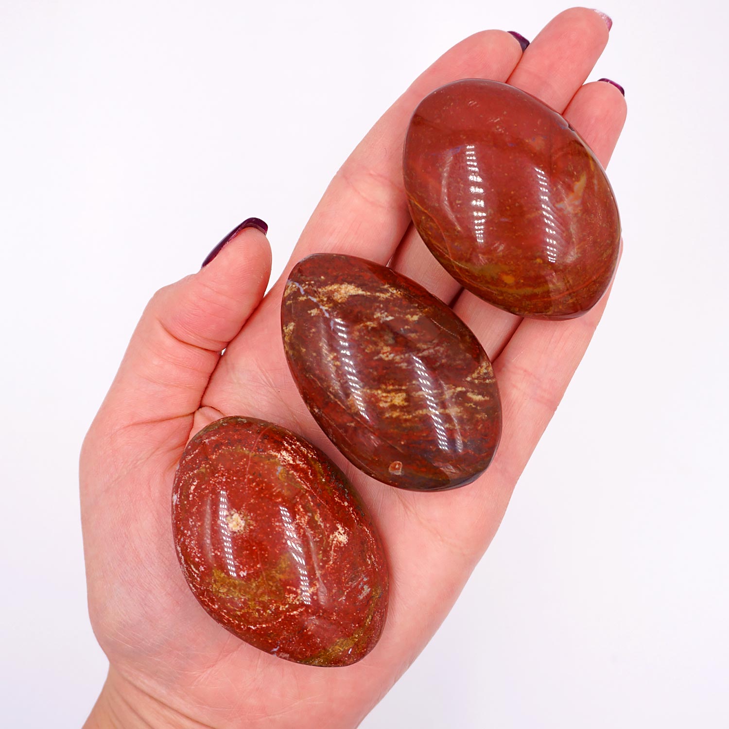 Különleges vörös jáspis marokkövek. A képtől eltérően jobb minőségű köveink vannak jelenleg, szappan formában.