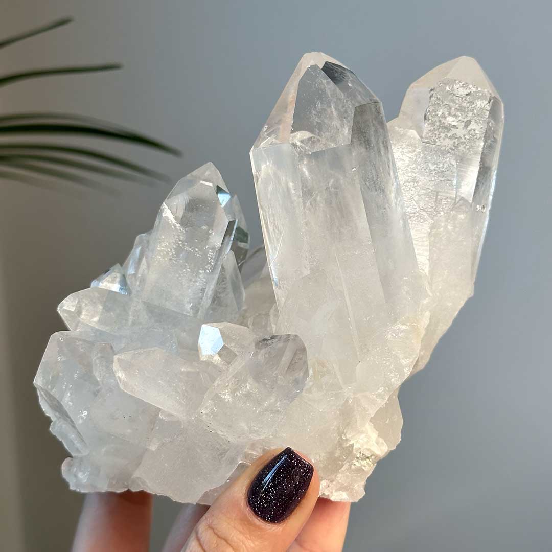 Gyönyörű, tiszta és szuper magas minőségű telep, tökéletesen formálódott csoportokban, hibátlan csúcsokkal, nagyon mutatós formációkban. Brazil lelőhelyről származik, magas rezgésű, nagyon tiszta energiája van!