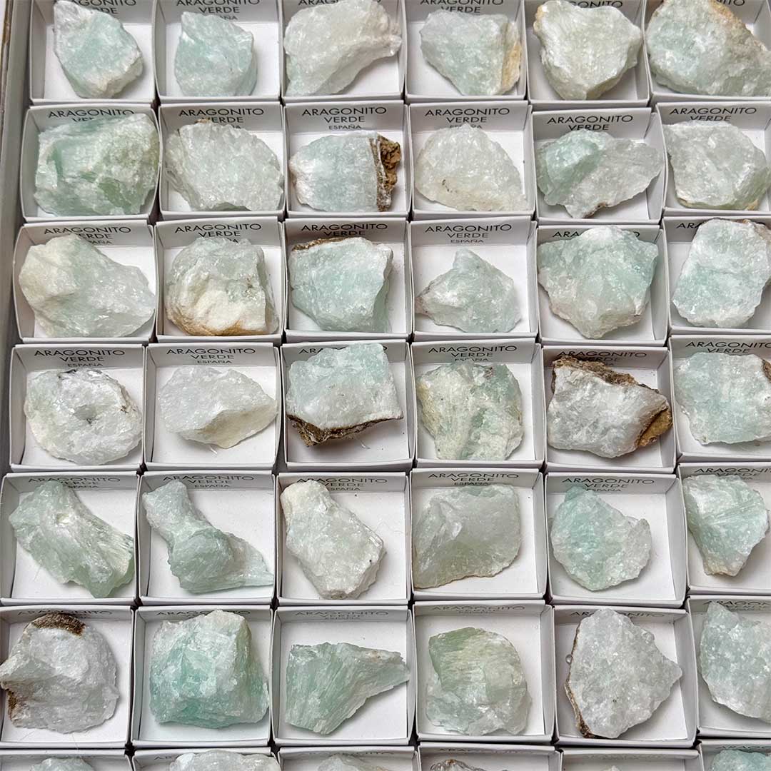 Pasztellkék aragonit nyersek Spanyolországból, mely nem számít gyakori lelőhelynek. Hasznos ásvány a gondolatok és érzések kommunikálására, segít nyitottabbá válni önmagaddal és a "rejtett" érzelmeiddel szemben, és lassan felszínre engedni ezeket.