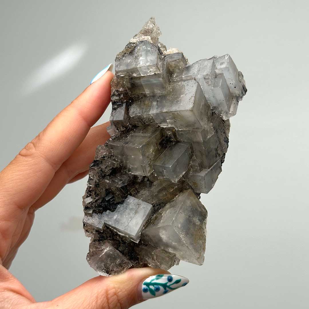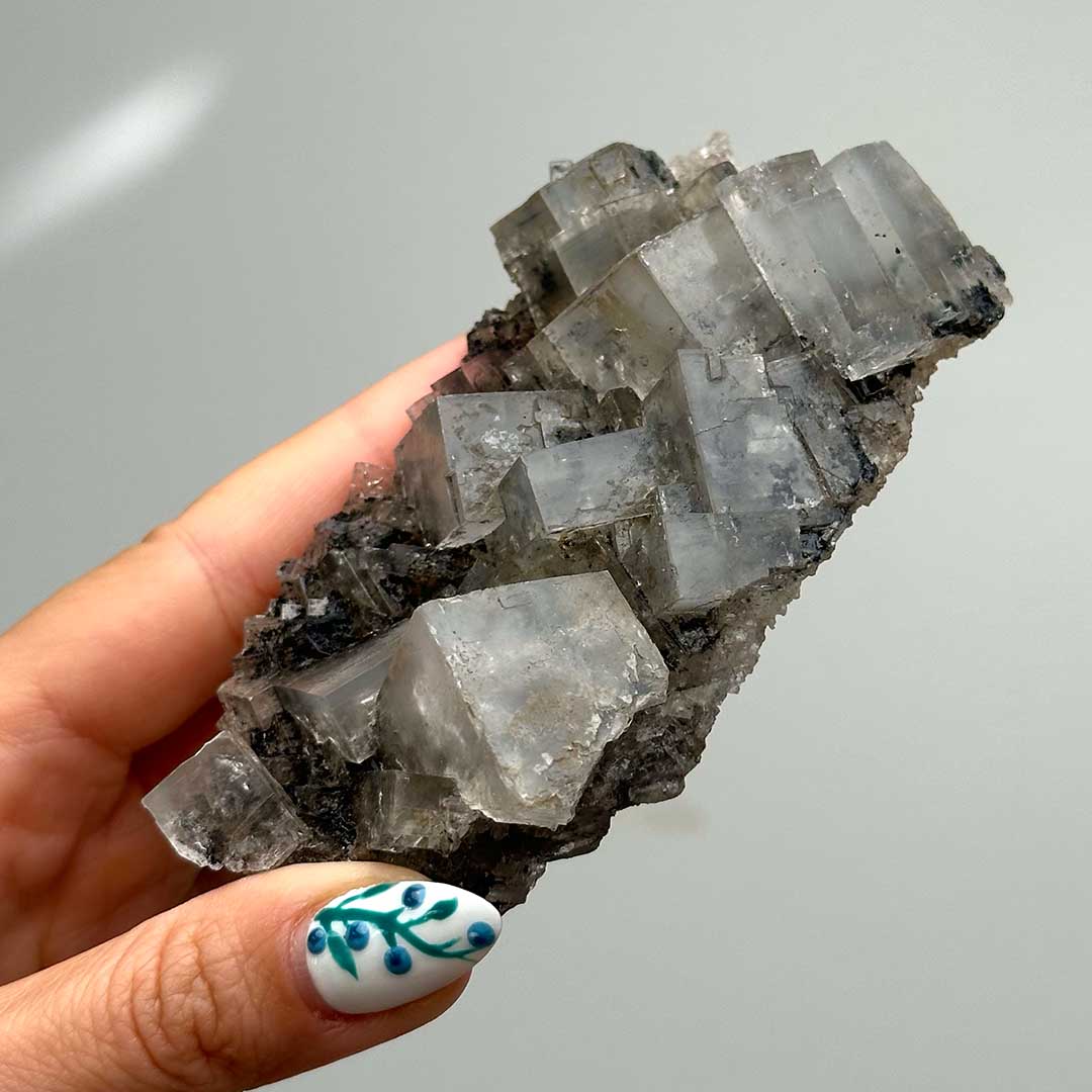 Ezek a szürkés-fehéres árnyalatú, jól fejlett kristályok a Marokkói Damnat bányából származnak, és kivételesen tiszta, ép szerkezetű példányok. A halit a nátrium-klorid természetes, ásványi formája (közismerten: kősó), amely jellemzően sós tavak vagy kiszáradó víztestek üledékében képződik. A legtöbb halit tömeges vagy töredezett szerkezetű, ezért az ilyen nagy méretű, jól kristályosodott darabok valódi ritkaságnak számítanak. Ezeket a különleges telepeket hosszú kutatómunka és alapos válogatás után sikerült beszereznünk!