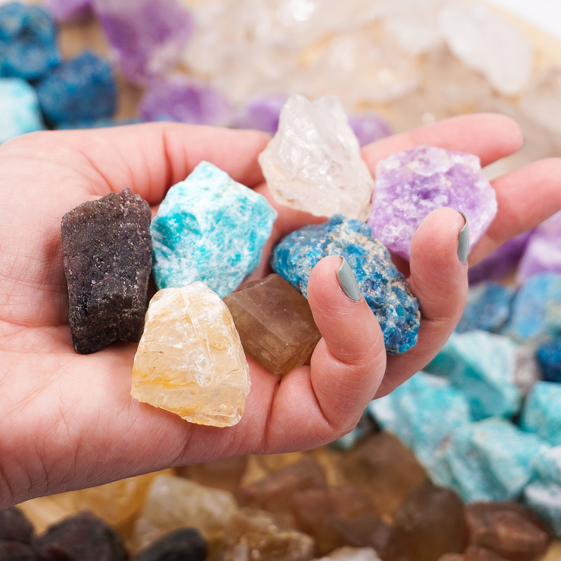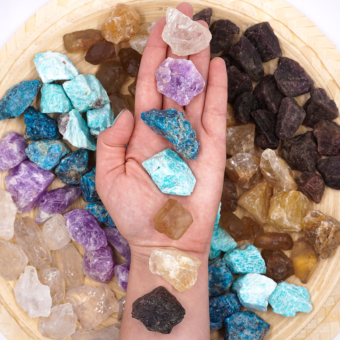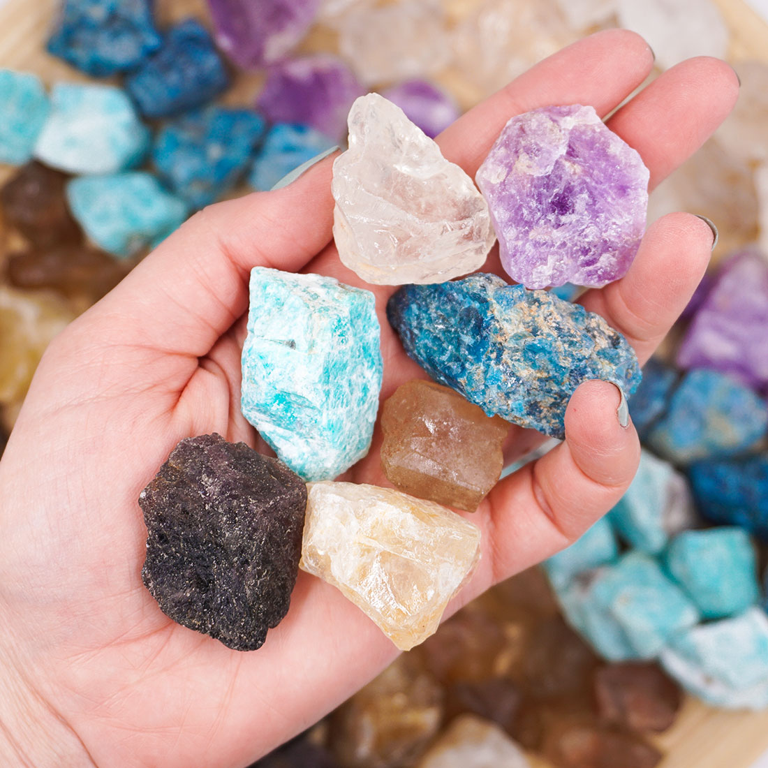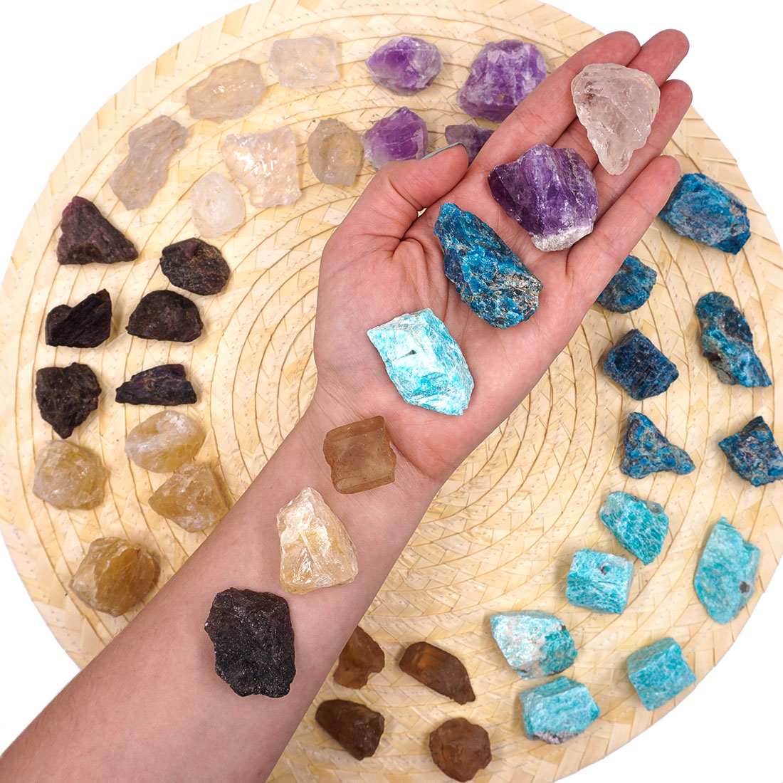 A tested hét csakráját hét különböző ásvány, hét különböző szín jelképezi, melyek együttesen hatva teremtik meg a test egyensúlyát és erősítik a különböző csakrák, szervek gyógyulásra való képességét. A hét különböző ásványt használhatod együtt, vagy akár külön-külön a megfelelő csakra testrészére helyezve.