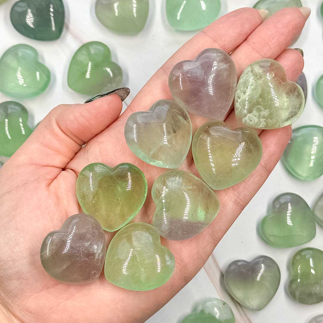 Gyönyörű fluorit szív faragványok, változatos színekben!