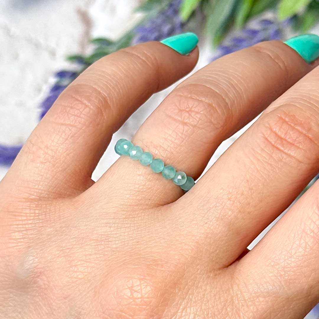 Természetes rugalmas gyűrű, amely kizárólag valódi amazonit ásvány gyöngyökből készült. Az amazonit világoszöldes árnyalata a tenger tisztaságát idézi, nyugtató és frissítő energiát sugároz, így tökéletes kiegészítő a mindennapokra.
