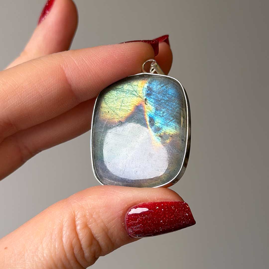 Szivárványos Labradorit medál – rozsdamentes acél lánccal!