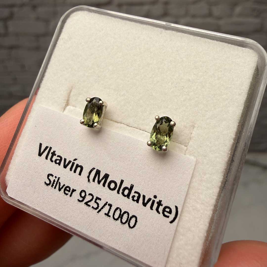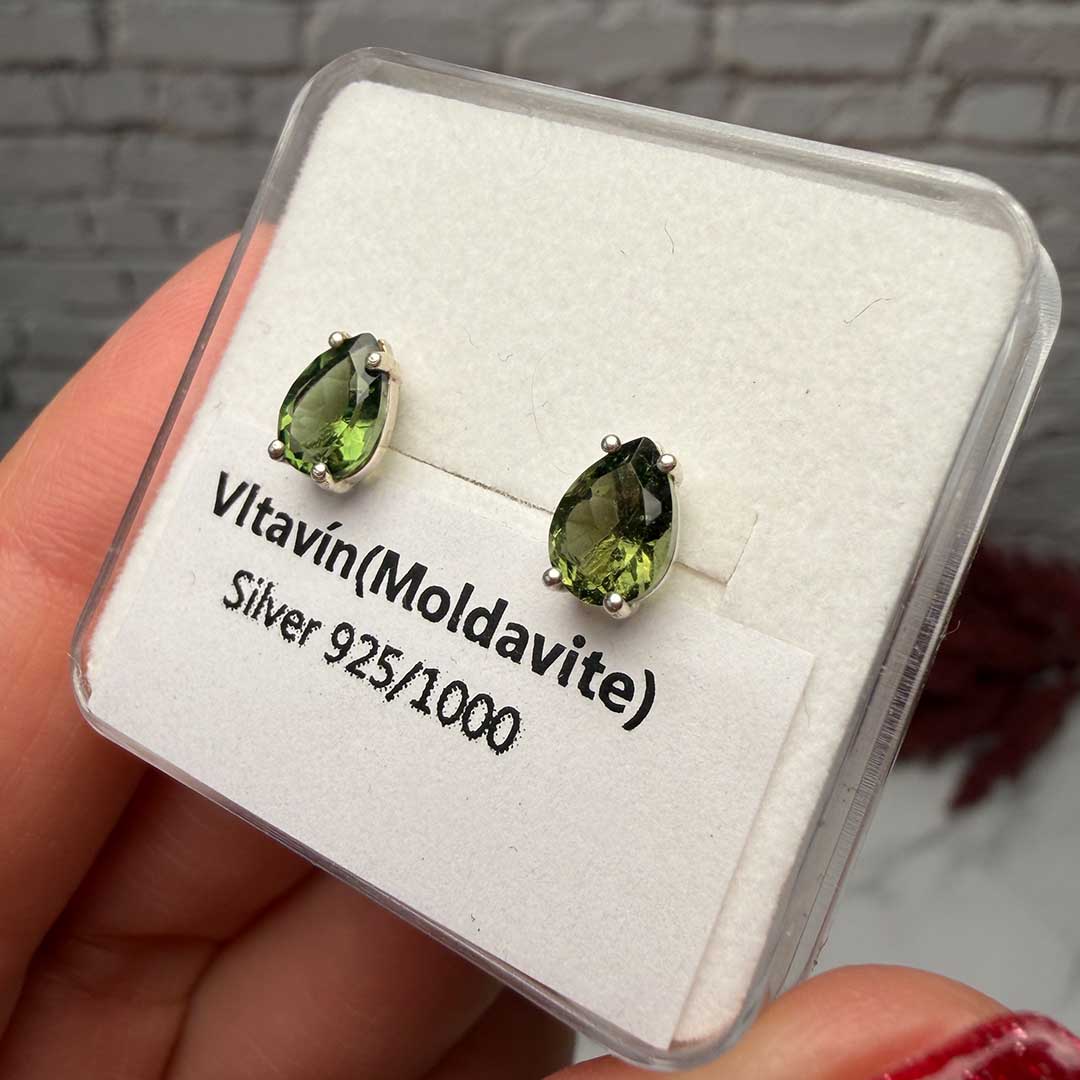 Moldavit fülbevaló ezüstbe foglalva – közepes méret