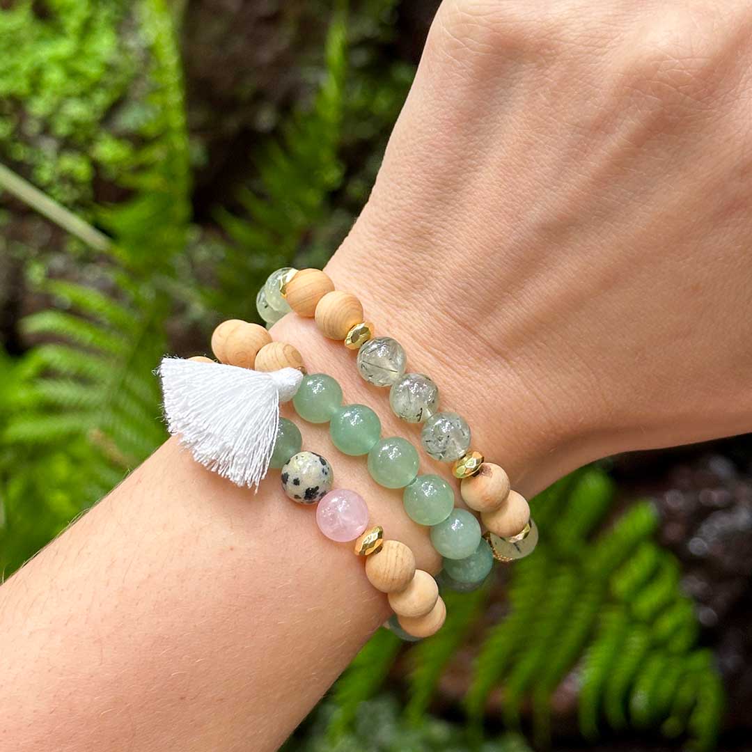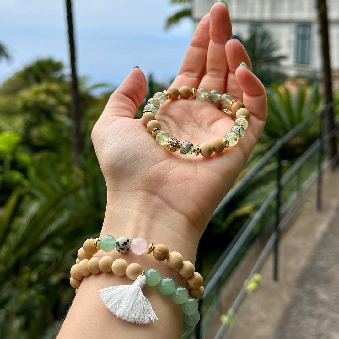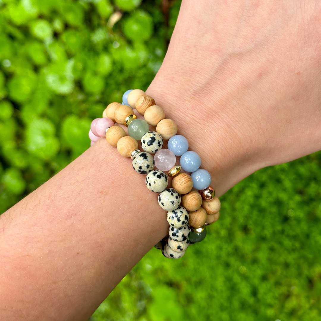 Thea – Aventurin, Dalmata jáspis, Rózsakvarc és Palo Santo karkötő