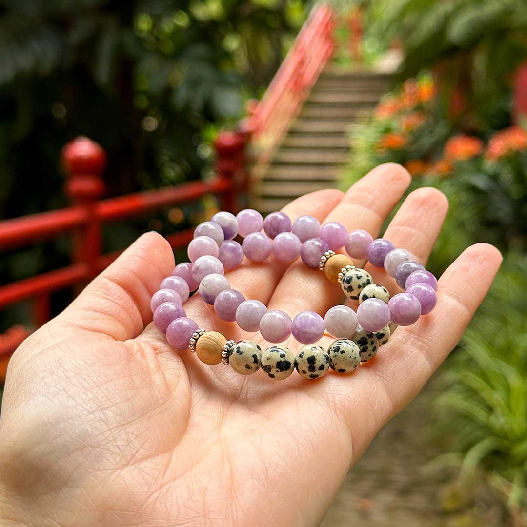 Lunabelle – Lepidolit, Dalmata jáspis és Palo Santo karkötő